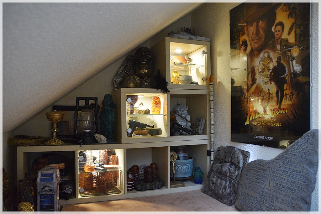 Betreff: Re: Props und Co. Hier mal ein aktueller Blick auf einen Teil der Sammlung. Das Königreich-Poster ist neu. Ich habe mir seiner Zeit nie das finale Poster zugelegt und immer "nur" das Teaser Poster zu Indy 4 hängen gehabt. Nun ein neues Plätzchen und ein "neues" Poster. :-) |