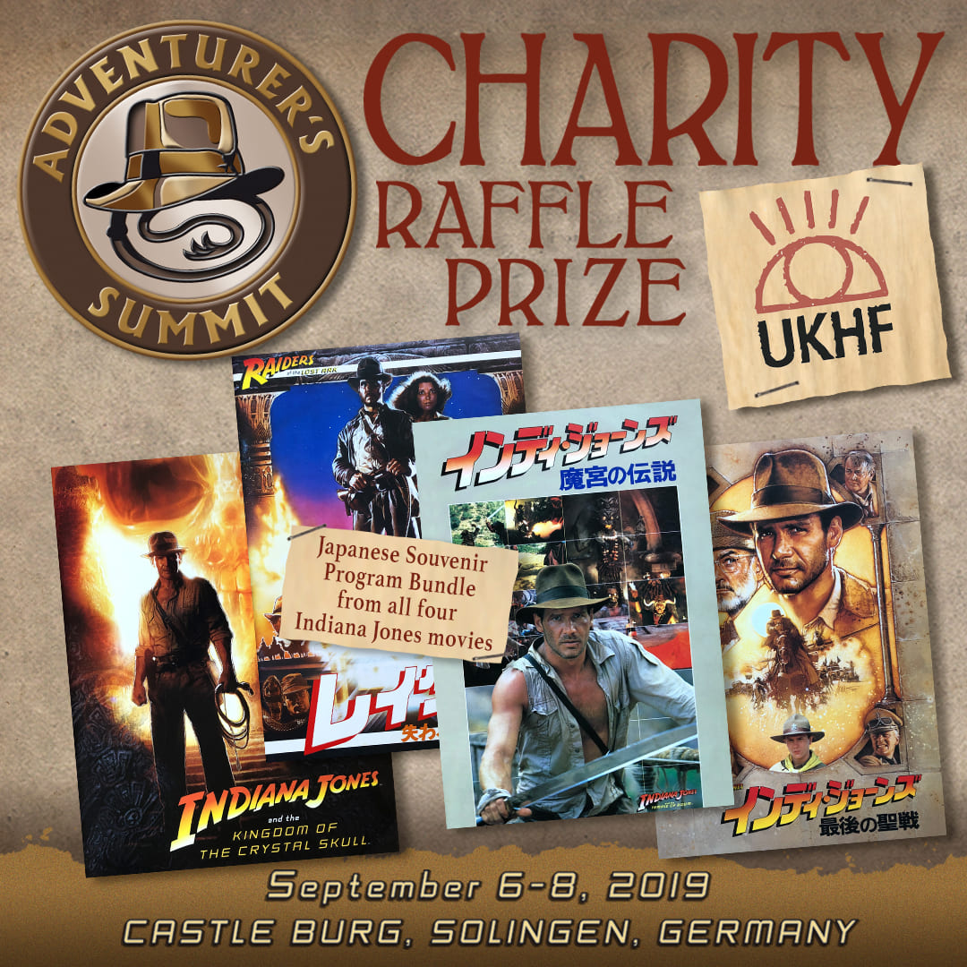 Betreff: Re: Adventurer’s Summit 2019 Schloss Burg, Solingen – Teilnehmerliste & Programm Auf dem diesjährigen Adventurer's Summit versuchen wir, eine Vielzahl von Indiana Jones Leckerbissen anzubieten, die bei unserer Charity Tombola gewonnen werden können. Hoffentlich hilft uns der Verkauf der Tombola Tickets dabei, dringend benötigte Mittel für die UK Friends of Healing Focus zu sammeln. Vielleicht wird auch Dein Ticket gezogen, denn dann kannst Du dieses Set mit 4 Original japanischen Souvenir-Programmen von allen Indiana Jones Filmen mit nach Hause nehmen. Diese Programme zeichnen sich dadurch aus, dass sie einiges an seltenem Bildmaterial enthalten. Interesse? Dann sieh zu, dass Du Dir auf dem Summit genügend Tickets für die Tombola sicherst ![]() Der nächste Preis folgt bereits am Dienstag |