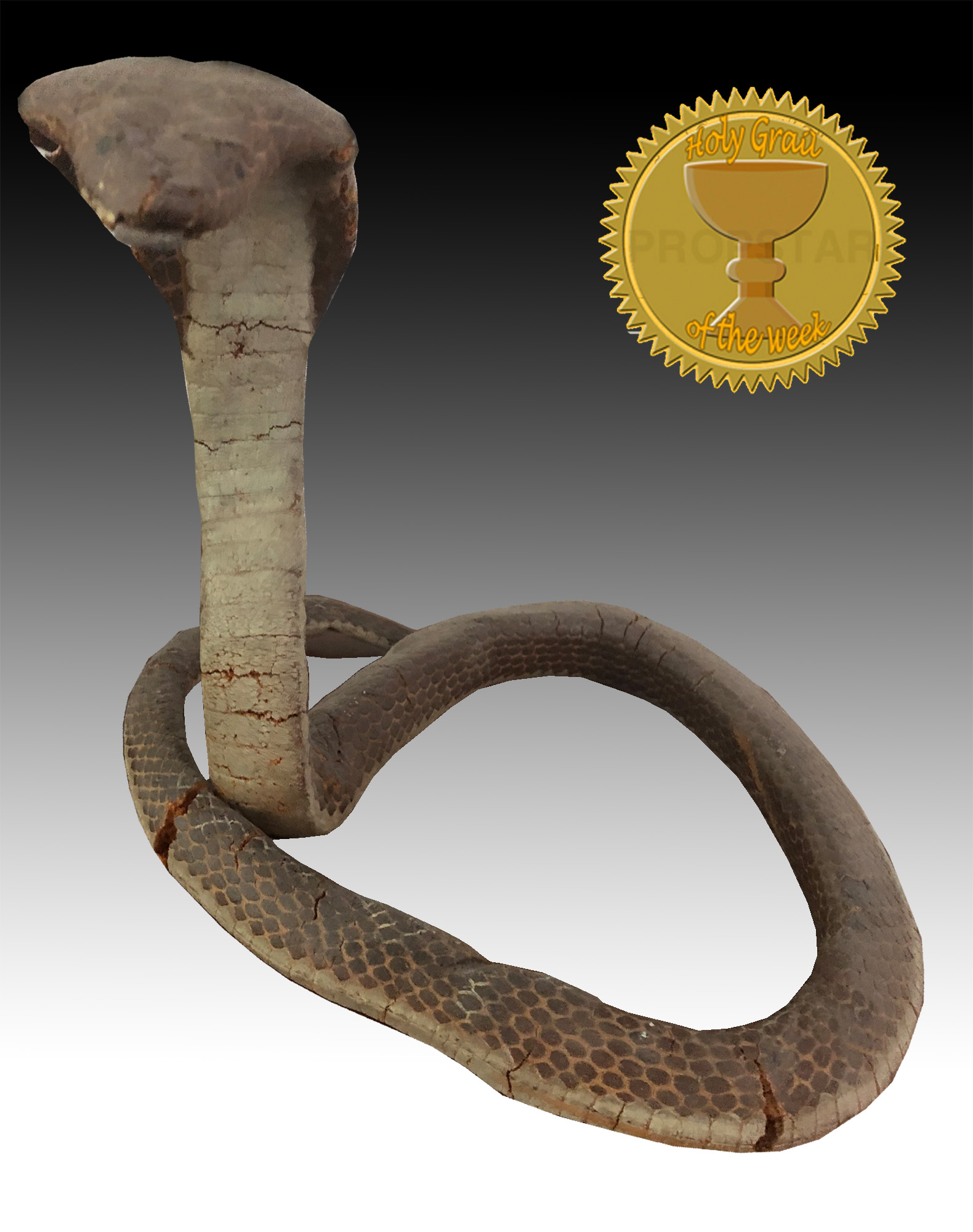 Betreff: Re: Holy Grail of the Week Bei den Dreharbeiten in der Quelle der Seelen kamen zu den tausenden von echten Schlangen auch viele künstliche Schlangen. Der Holy Grail diese Woche ist eine Cobra, verwendet bei den Dreharbeiten. Sie besteht aus (mittlerweile porösem) Schaum und einem innenliegenden Drahtgeflecht. |