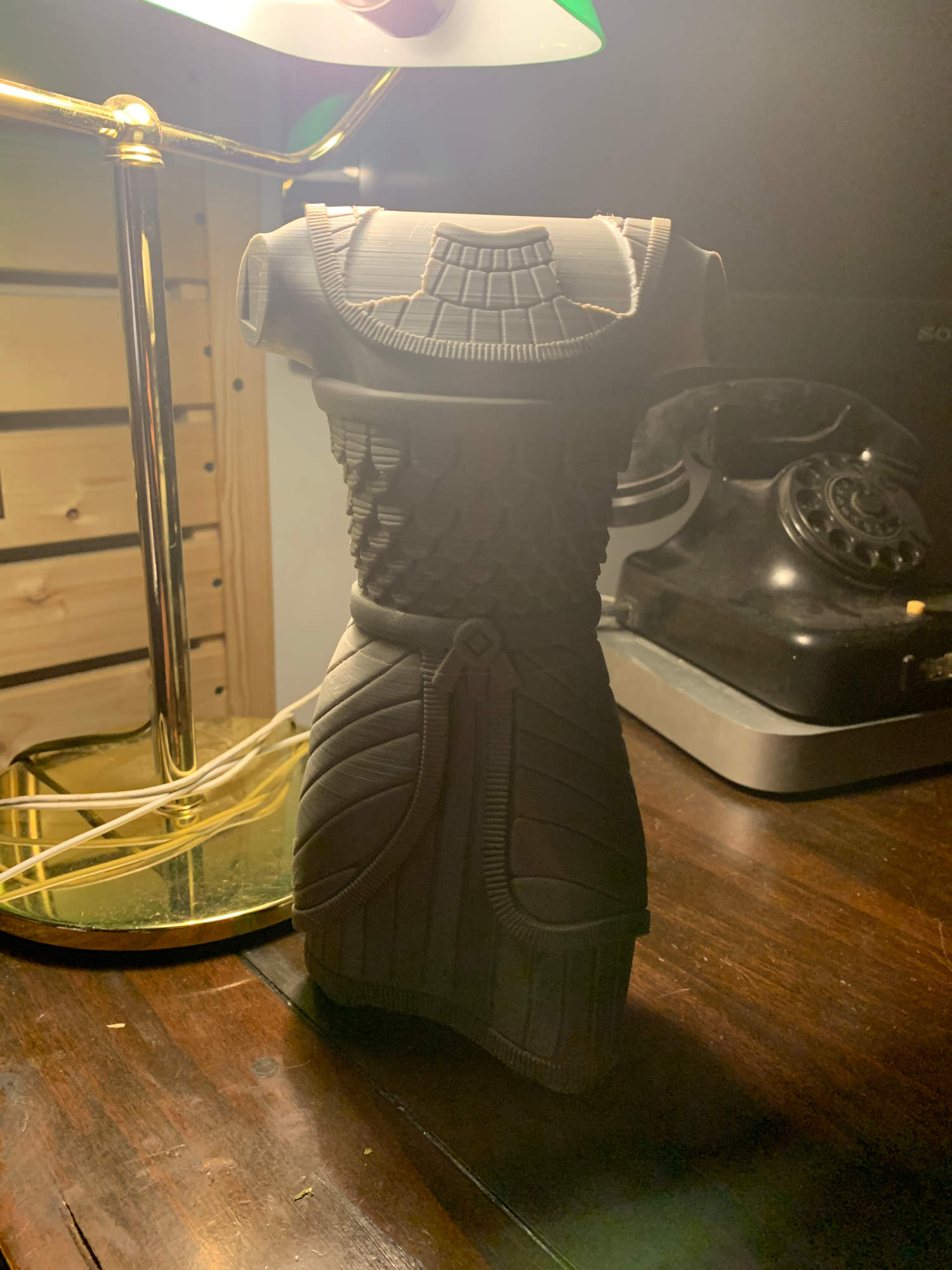 Betreff: Re: Projekte So hier mal ein Nachfolgeprojekt zum gehörnten Atlantis Idol. Ich habe das Oberteil des Golden Armor Idols auf den unteren Teil des kostenlosen Idols von Thingiverse gesetzt, von dem ich den Topf aber auch etwas gekürzt habe. Ich nenne es das tailllierte oder einfach the Athletic Atlantean Idol. Und normalerweise mache ich keine Teilabschnitte, aber in diesem Fall habe ich das Idol ja fertig gemacht, denn danach habe ich es mit Silikon abgeformt. Der nächste Schritt wird der Wachsabguss sein. Ich bin gespannt. |