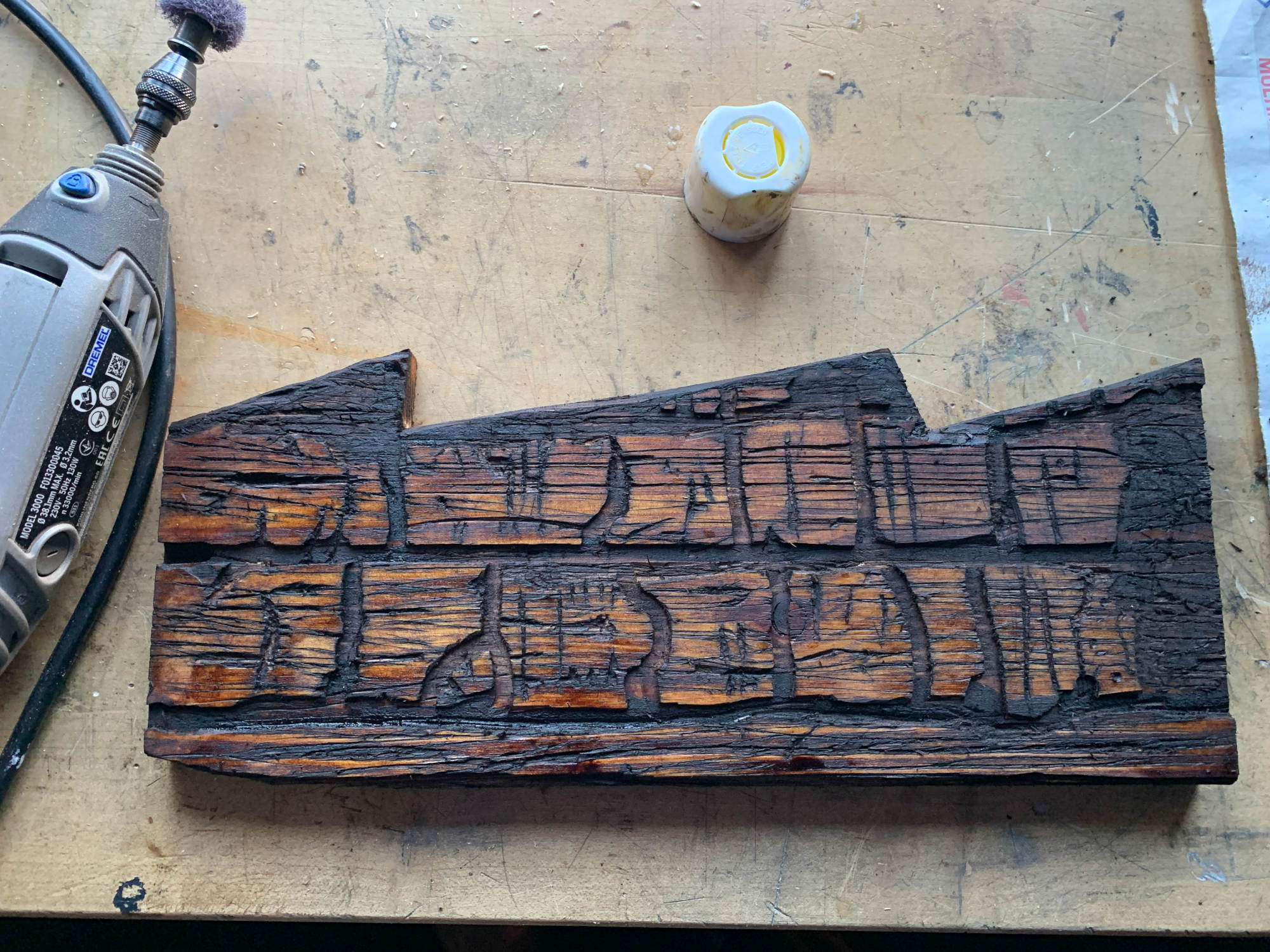 Betreff: Re: Projekte So mal wieder was Anderes. Die Olmec Planke aus "Das Vermächtnis der Tempelritter 2". Das Muster habe ich grob mit Kohlepapier übertragen und dann mit dem Dremel mit verschiedenen Aufsätzen und Schnitzwerkzeug langsam rausgearbeitet. Anschließend gebeitzt und mit weißer Akrylfarbe vereinzelt Highlights gesetzt und gealtert. Das Ding verzeiht, wie das ganze alte Zeug, Gott sei Dank ein paar Fehler. |