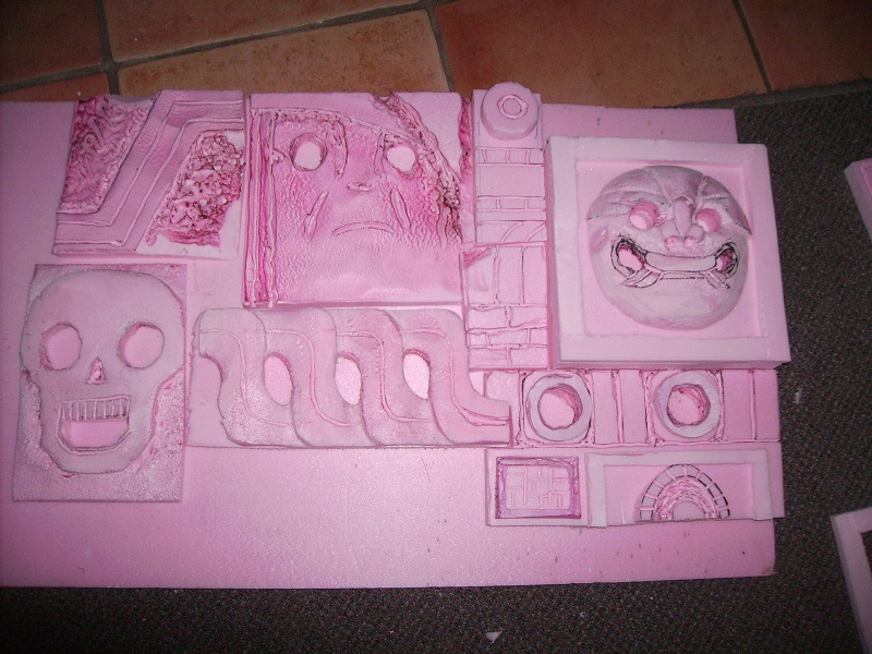 Betreff: Re: Projekte Und weiter gehts mit dem Sonnegottrelief aus Raiders. Grob auf einer Dämmplatte angezeichent und dann mit Cutter, Skalpell und Schleifpapier die Schichten abgetragen. Anschließend mit Lack und Akryllfarben bemalt. Die Struktur auf der Schaumplatte ist mit zusammengeknüllter Alufolie eingdrückt worden. Und Dekomoos hatte ich auch noch rumliegen. |
