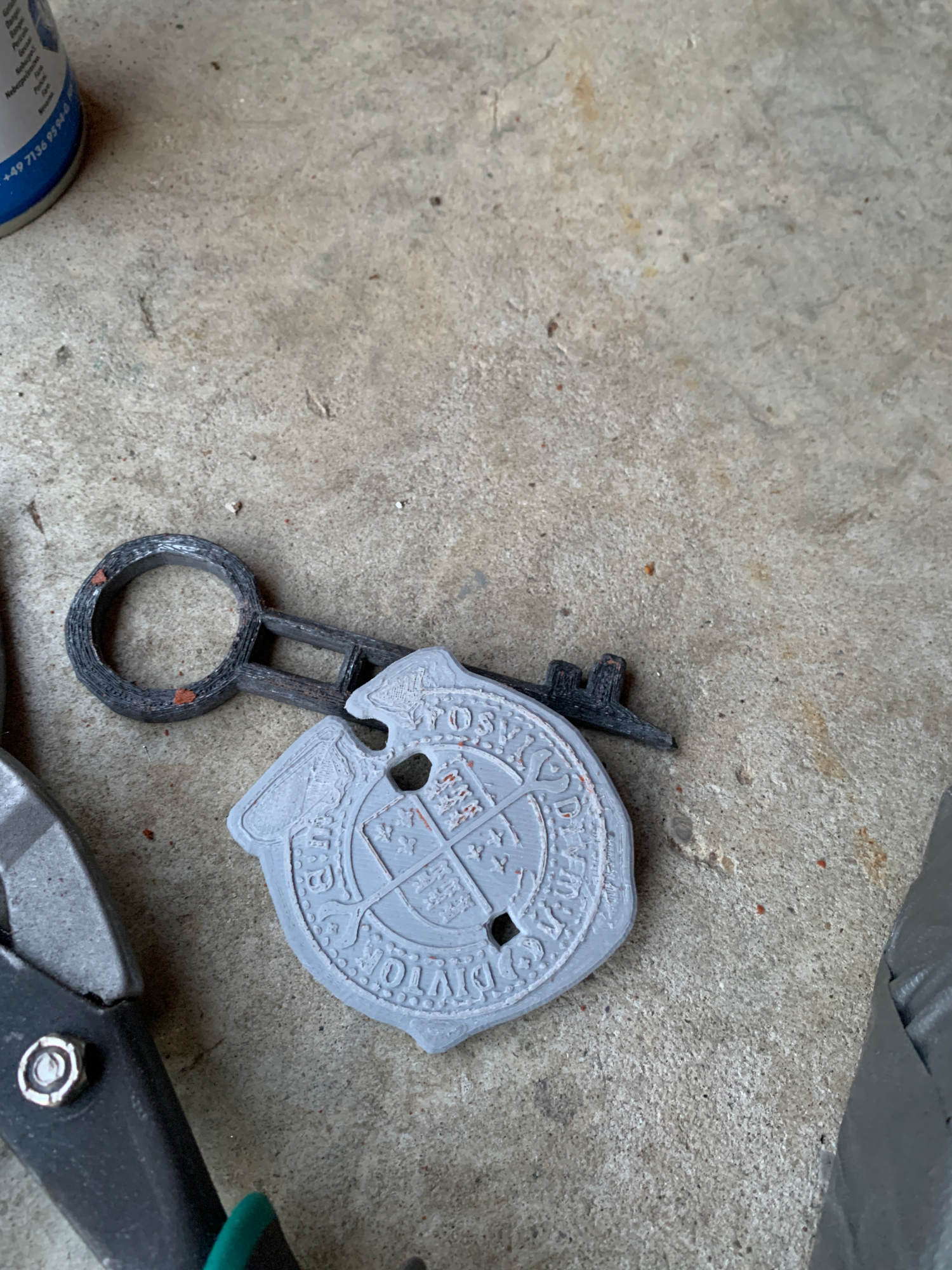 Betreff: Re: Projekte Hier noch die letzten Urlaubsprojekte. Der Goonies Schlüssel, 3D gedruckt und anschließend mit Formsand in Zinn gegossen. Brüniert und bemalt mit Lack- und Akryfarben. Passt als Deko auch in den Schrank. Und noch der Ausweis von Klaus Kerner aus FoA. Ich habe das Bild aus dem Spiel duch die Remini App gejagt und dann auf ein Passbild von Arnold Schwarzenegger geshopped. Das Resultat ist etwas creeppy aber irgendwie lustig. Da es keine wirklich aussagekräftigen Referenzen im Spiel zum Pass gibt habe ich ein Dokument der Sicherheitspolizei verwendet, was einem deutschen Agenten um die Zeit wohl am nähesten kommen sollte. Die Symbole habe ich für hier verzerrt. |