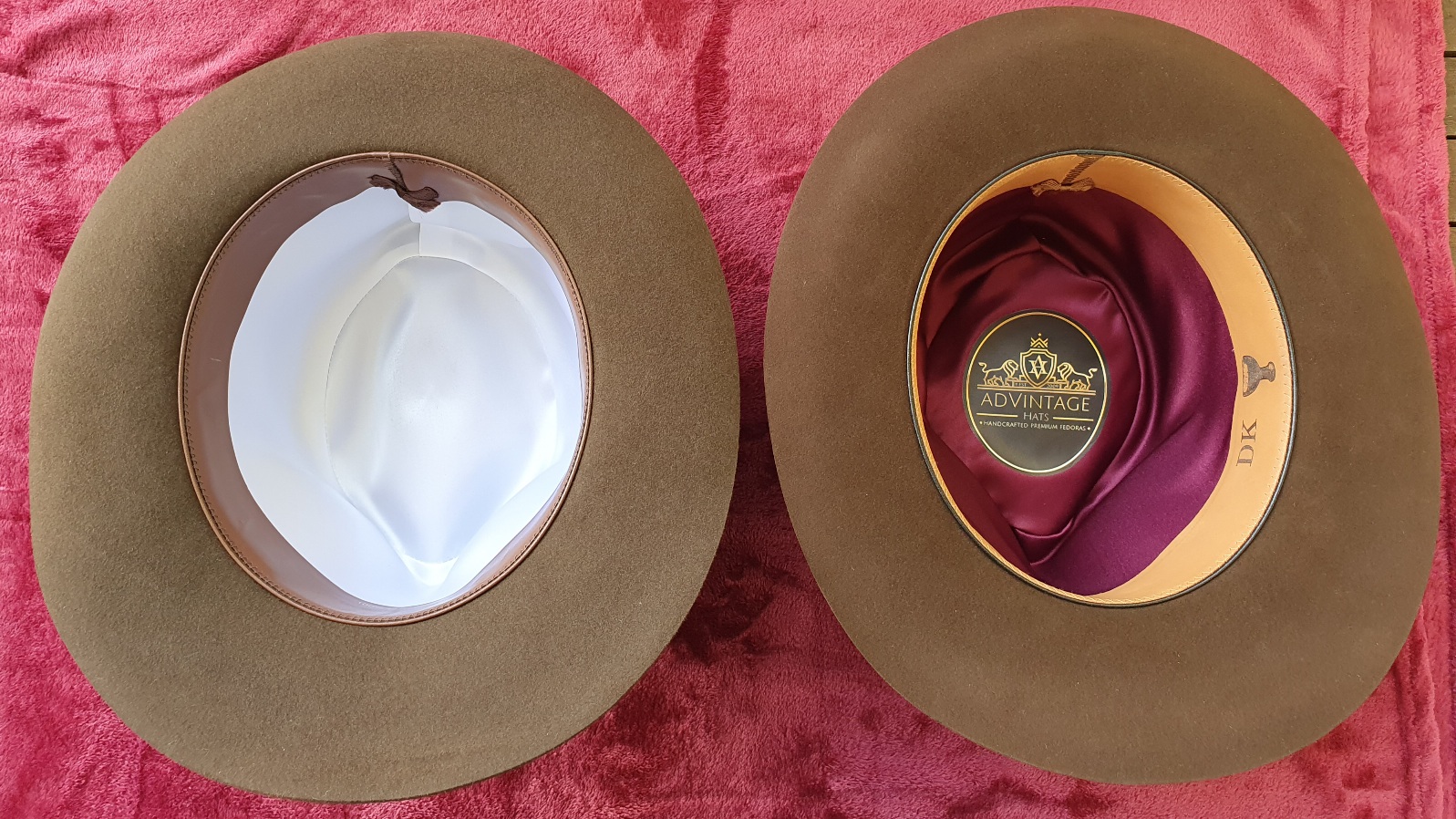 Betreff: Re: Fab's Indysammlung Und für alle Interessierten hier der Vergleich eines adVintage Harrison Fedora in 80% Kaninchen/20% Biber (ja, das gab es mal..., links) und des adVintage Crusader Fedora in 100% Biber (rechts) : |