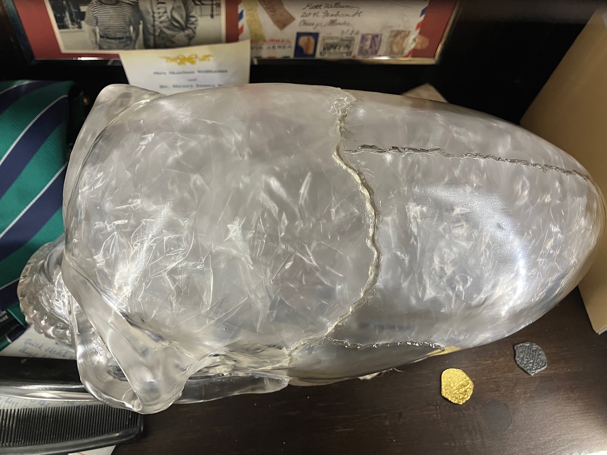 Betreff: Re: Fab's Indysammlung Zum Ende des Jahres hin trudeln noch ein paar restliche Sachen ein. Hier ein Teil, auf weches ich jetzt schon knapp 2 Jahre warte. Der Kristallschädel 1:1 von Peter74 und AtimeSidekit im RPF. Es ist ein wirklich ein spektakuläres, riesiges Teil, was schon etwas Besonderes in der Vitrine ist und bleiben wird. Maße (40x17x20 LxBxH) Bald auch hoffentlich der Vergleich mit dem Disneyschädel |