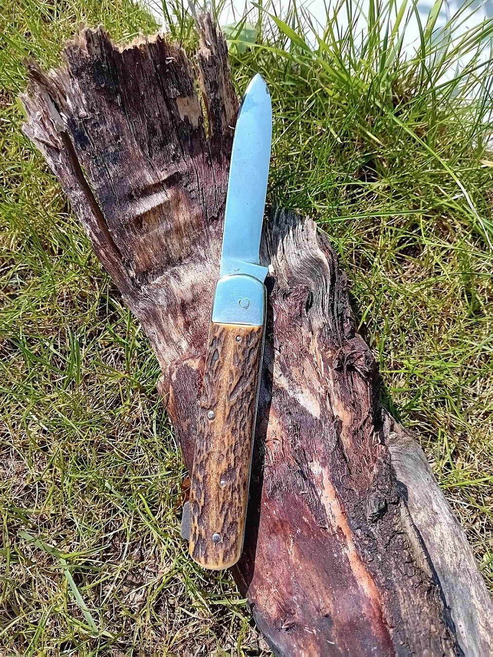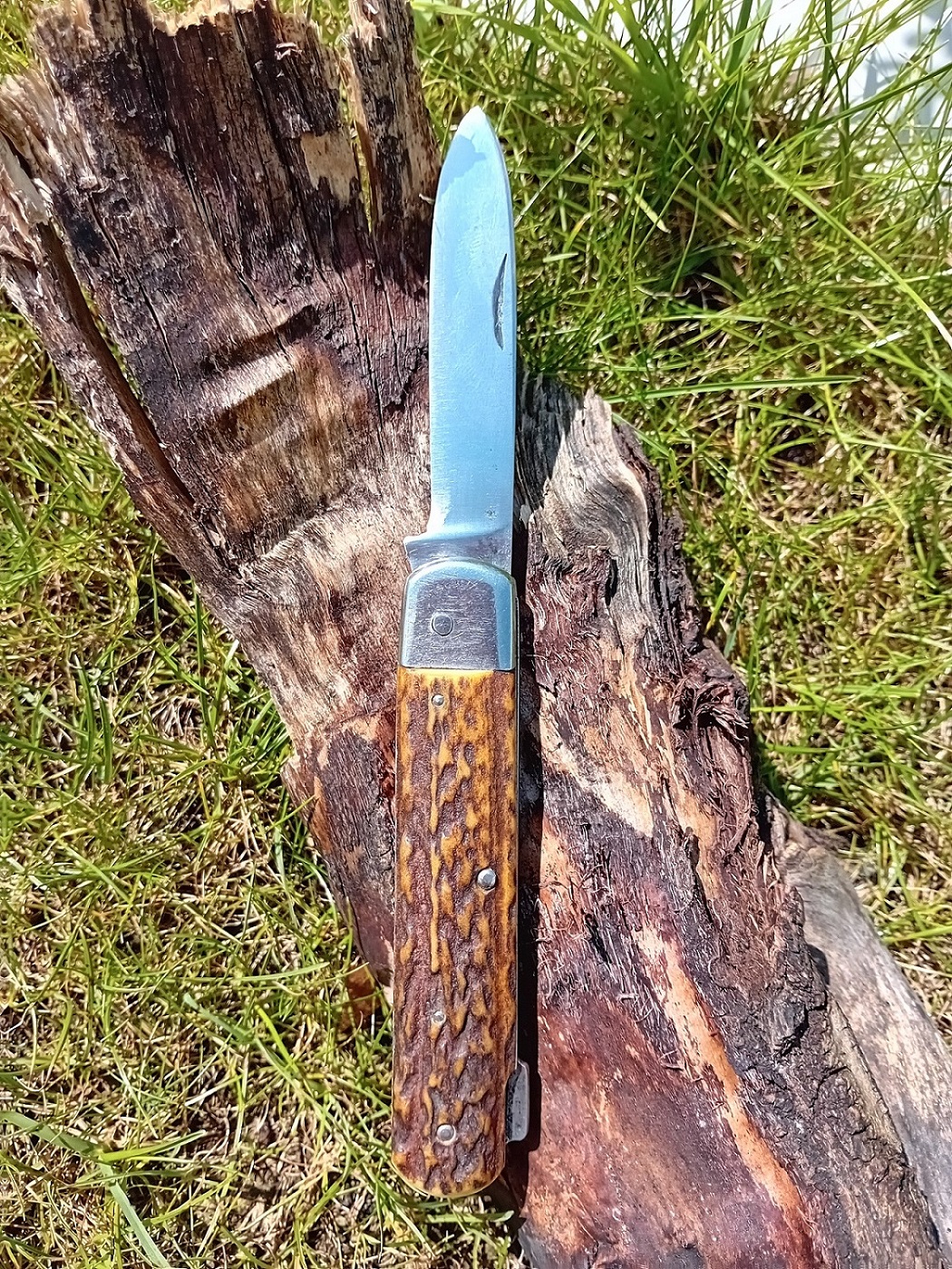 Betreff: Re: Kaindee´s Sammelsurium Mahlzeit! Da kommt man entspannt (mehr oder weniger ) aus dem Urlaub zurück und was findet man in der Post?Mein Indy-Messer ist angekommen! Da ich selbst nicht fähig war ein solches Messer zu einem guten Kurs an Land zu ziehen (Linder ist ja quasi vergriffen oder fängt irgendwo bei ¤ 160,-- an - habe da eins gefunden) und ich ja "nur" ein Indy-Messer wollte welches bei mir nicht 100% S.A. sein muss so hat der liebe Tamanosuke sich auf die Suche gemacht und tatsächlich ein Messer gefunden welches mir auf Anhieb gefällt. Leider habe ich am Messer keine Marke entdecken können, aber halb so wild. Das Messer ist scharf angekommen und definitiv in Würde gealtert und so wie es aussieht war es auch viel im Einsatz. Ein bisschen Aufarbeitung ist notwendig, aber das mache ich gern. Paar Flecken rauspolieren, Griffschalen, etc. ... Also - ich bin 100% zufrieden mit dem Teil und habe somit ein weiteres Teil in meiner kleinen Indy-Sammlung! DANKE Tama! |