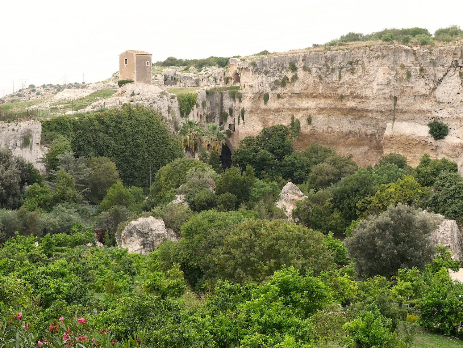 Im Inneren befindet sich die Latomia del Paradiso. Das war ein Steinbruch in dem Sklaven und Gefangene geschufftet haben. Als der Abbruch abgeschlossen war, wurde die innere Höhle in ein echtes Gefängnis umgewandelt. Tatsächlich hat die Höhle die merkwürdige Form und Funktion von einem riesigen Ohr. Es scheint kein Zufall zu sein, ganz im Gegenteil.
