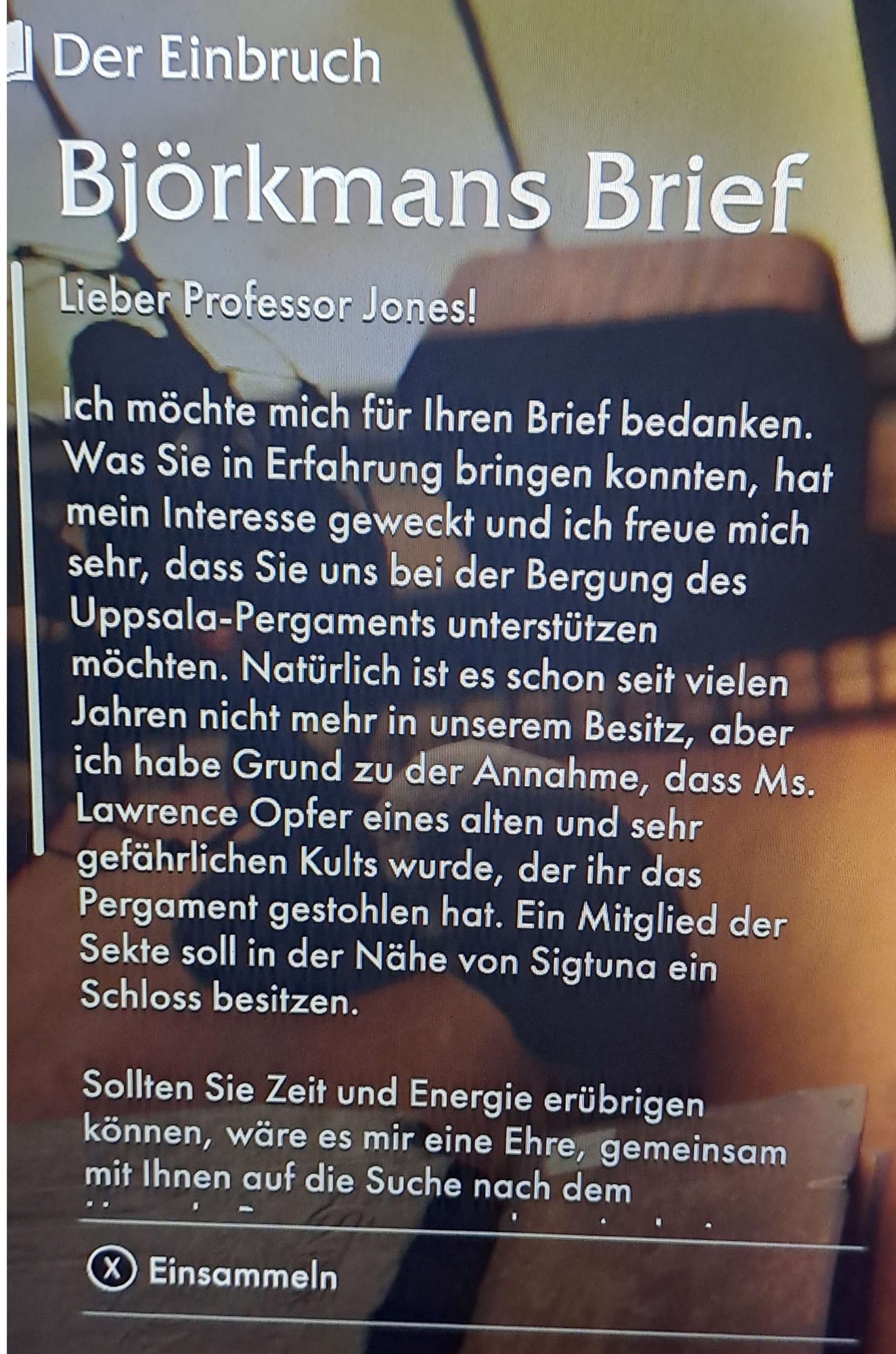Neben dem markierten Punkt dieses Ortes auf dem Special Edition Globus und dem Reise- Sticker auf der Verpackung gab es im Spiel selber noch einen Brief aus Schweden zu finden.