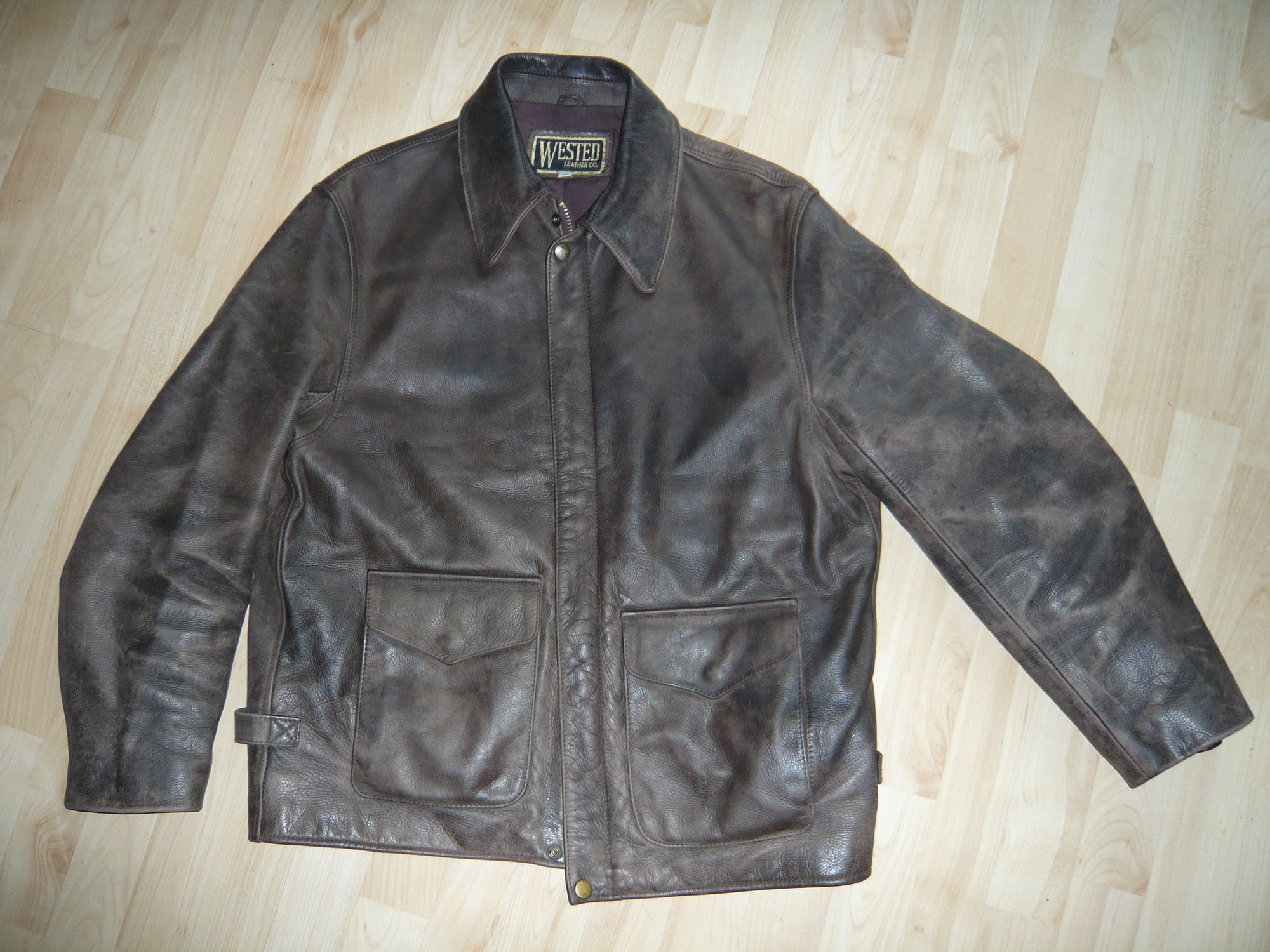Die Jacke war ein bisschen ausgetrocknet. Ich hab sie jetzt gerade noch gereinigt und mit Lederpflege behandelt.