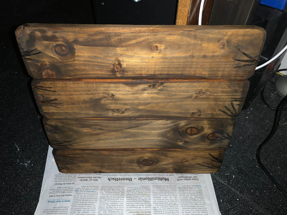 finde ich super Mir gefällt besonders gut, dass die Struktur deines Holzes noch so gut sichtbar ist. Die meissten Akteure knallen da ja so viel dunkle Farbe drauf, dass das Material kaum noch erkennbar ist.