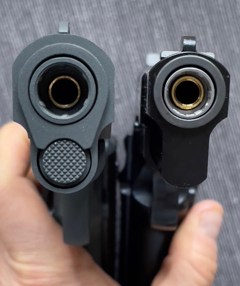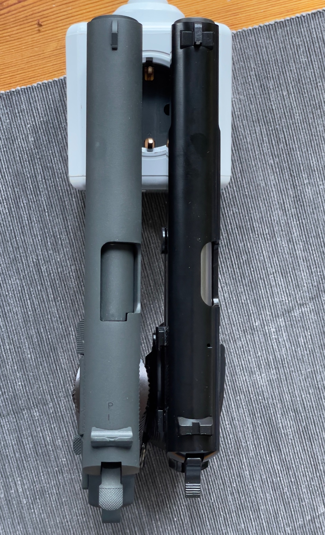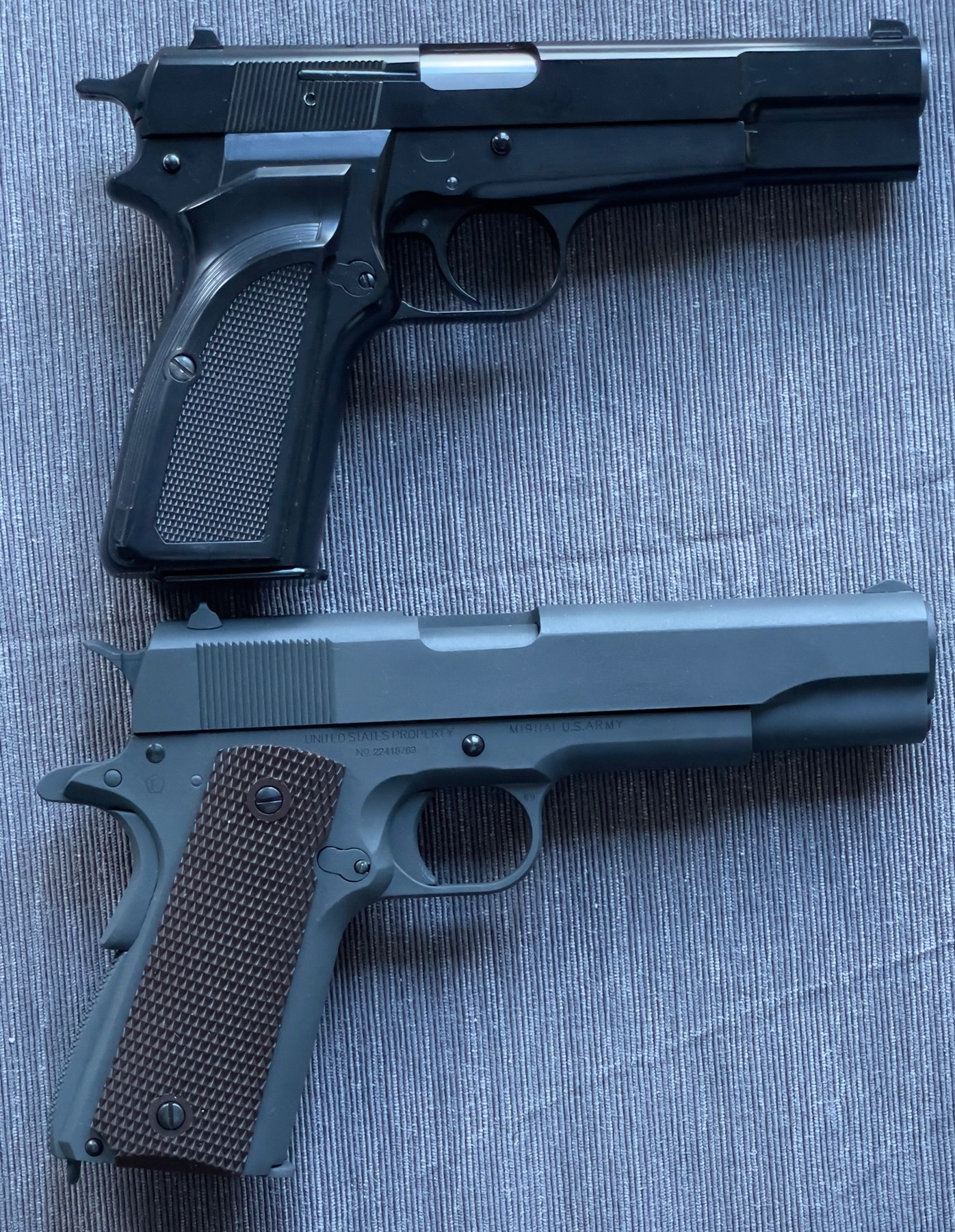 Beide Waffen liegen von der Größe nicht sehr weit auseinander und die M1911 sollte auch in den Holster passen.