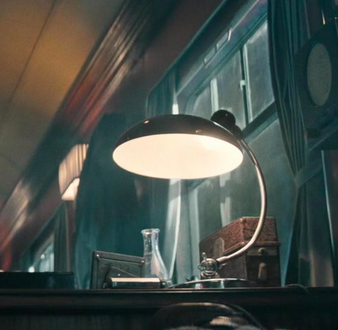Die Lampe die auf dem Tisch im Zug steht ist eine Kaiser Idell 6631. Das Foto darunter von Eva Braun.