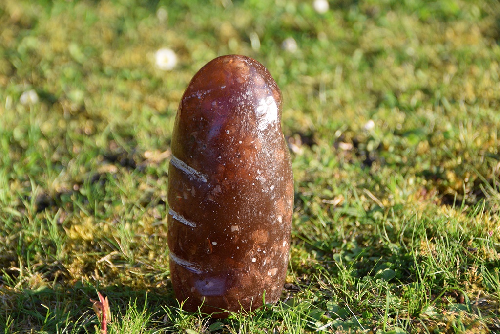 ich kann den neuen, unten abgebildeten Stein anbieten. Die Form ist der Dorfszene nachempfunden. Er ist je nach Beleuchtung braun blickdicht oder eben etwas durchscheinend. Innenleben ist entsprechend vorhanden. Die Fotos zeigen relativ gut das Spektrum.