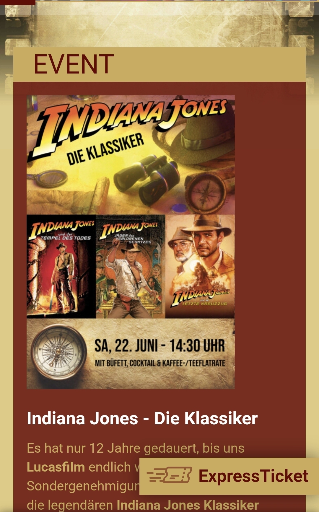 Betreff: Re: Indiana Jones 1-3 im Beluga-Kino Quickborn mit Catering am 22.06.2024