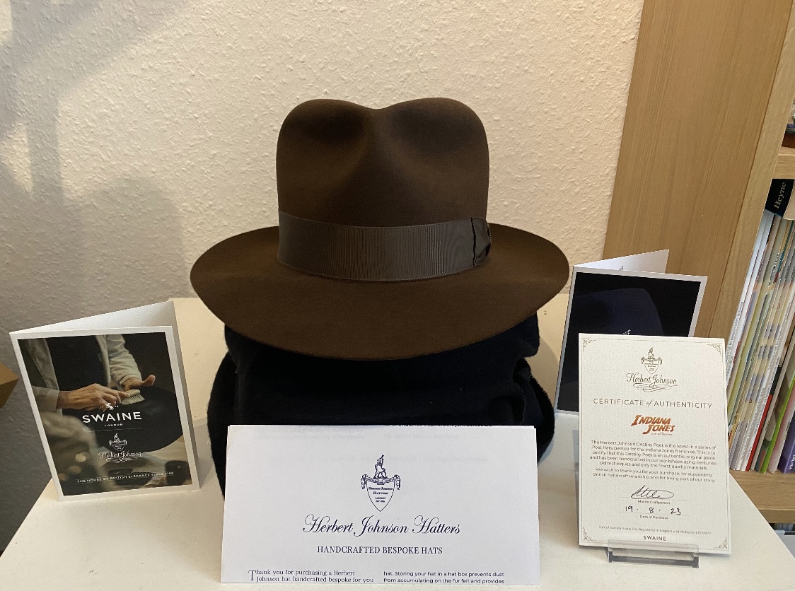 Angesichts einer bevorstehenden Hochzeit mit meiner Finanz- und Kriegsministerin trenne ich mich von einem meiner beiden Destiny Poets. Der Hut wurde im Kino-Jahr 2023 hergestellt und auf der Rückseite des Schweißbandes auf meinen Wunsch hin von Michelle, der Hutmacherin von Herbert Johnson, signiert. Der Hut war mein Ersatzhut und wurde nur einmal getragen. Er ist also wie neu. Die Größe ist 59. Ich habe ihn für knapp 615¤ (412,50£ Hut, 24,86£ Versand + Zoll) gekauft. Weg geht er für 500¤ plus Versand (innerhalb von drei Tagen). Bei Interesse gerne per PN melden.