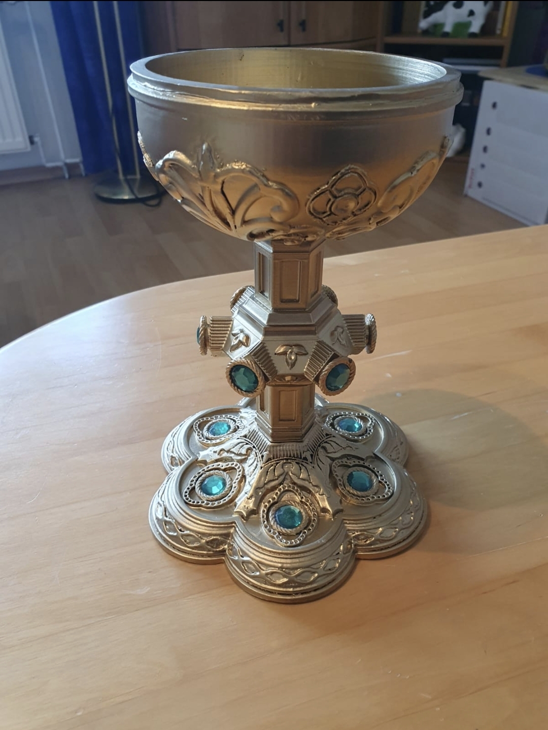 Der wurde vor ca.3 Jahren von Tigershark USA bei Etsy erworben für ca. 160,- EUR Es ist die Replik aus vom Kelch in der Gralshöhle aus der Donovan trinkt und "leicht" altert.