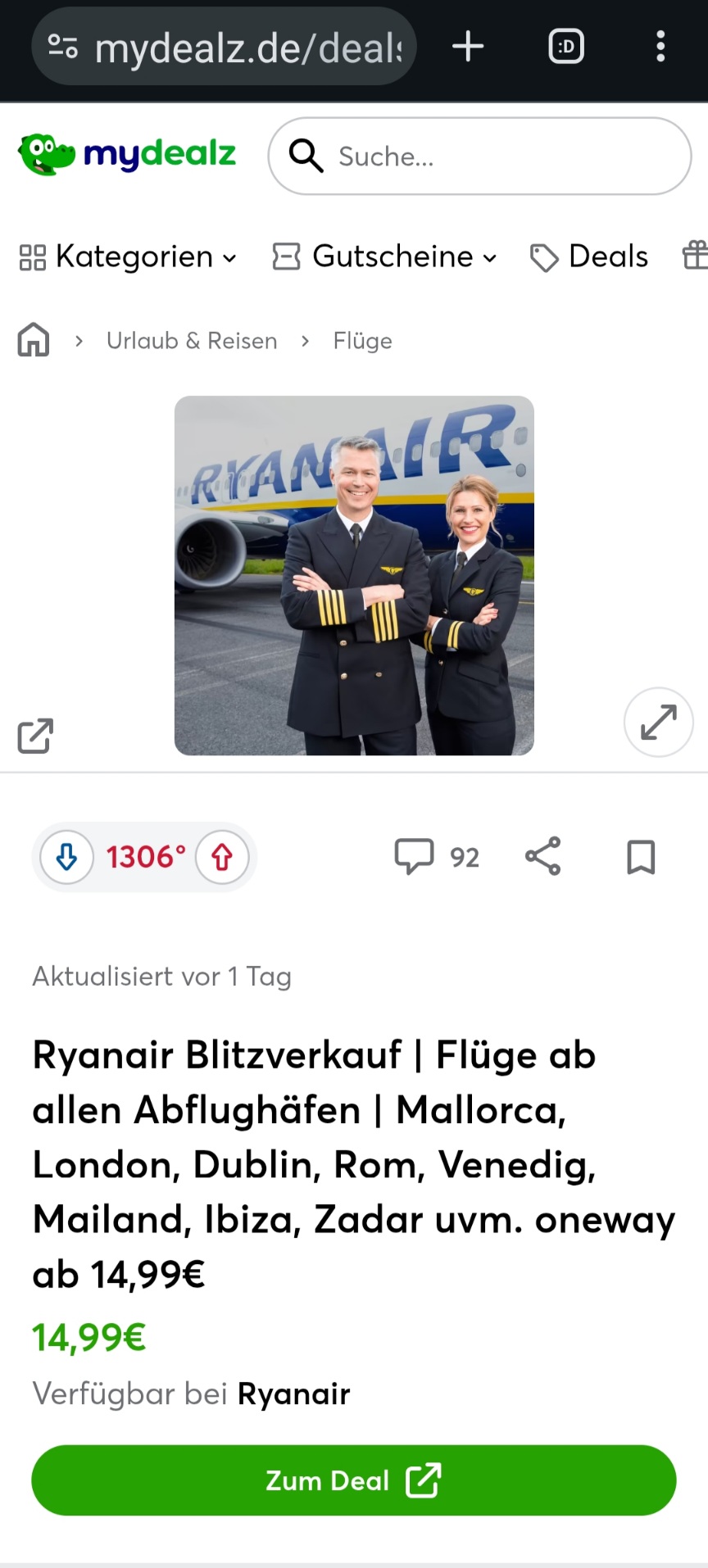 Was Deinen Vergleichsversuch mit Billigfliegern, in diesem Fall Ryanair, angeht, habe ich zwar keine Rose für Dich aber einen aktuellen Screenshot.