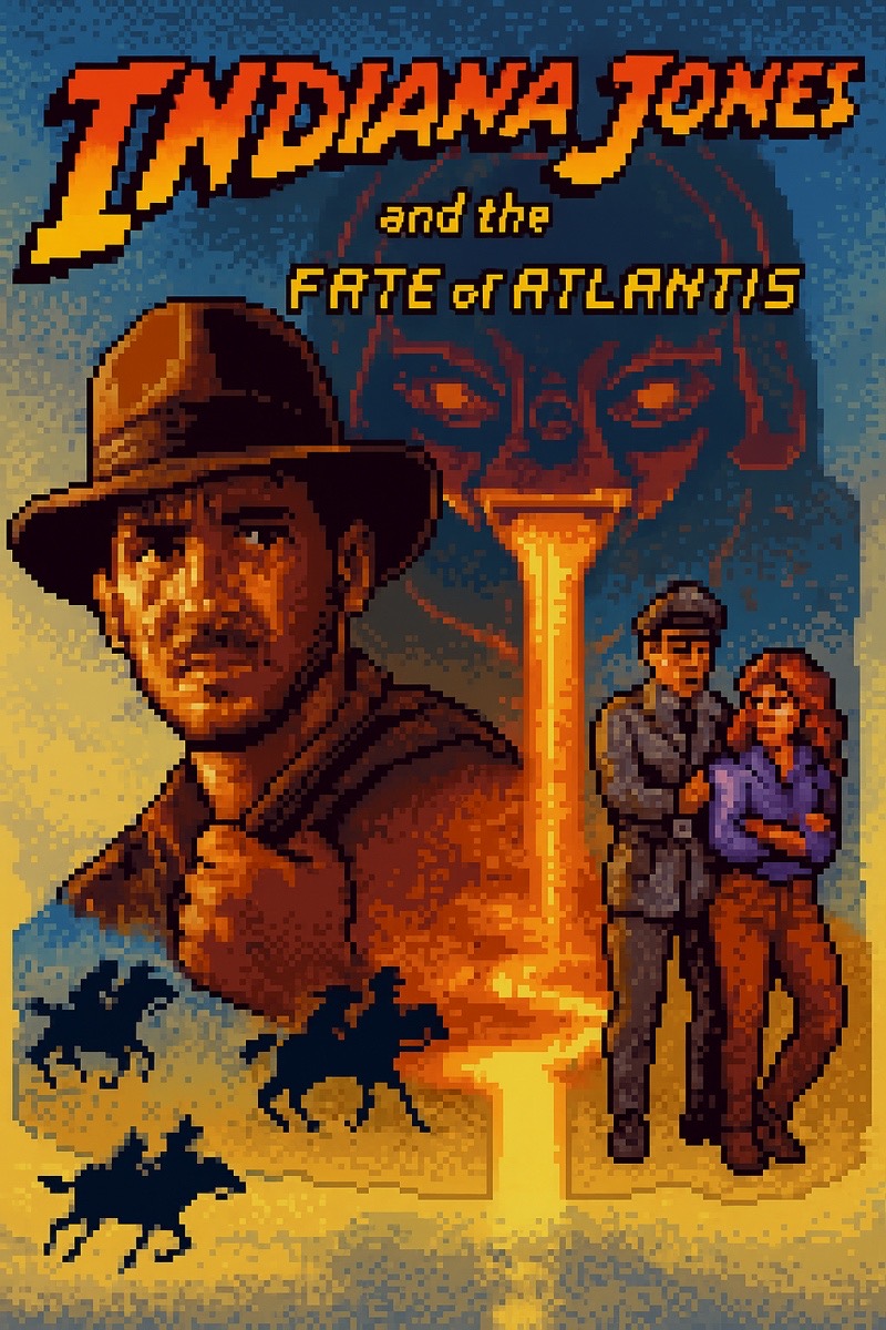 Ich bin immer mehr begeistert. Inspiriert durch FloW habe ich ebenfalls angefangen ein Poster zu erstellen. Allerdings für das Spiel: Indiana Jones and the Fate of Atlantis. Alles nur in Sora erstellt. Mit den Covern der alten Goldmann-Reihe nimmt es dieses Beispiel locker auf, denk ich