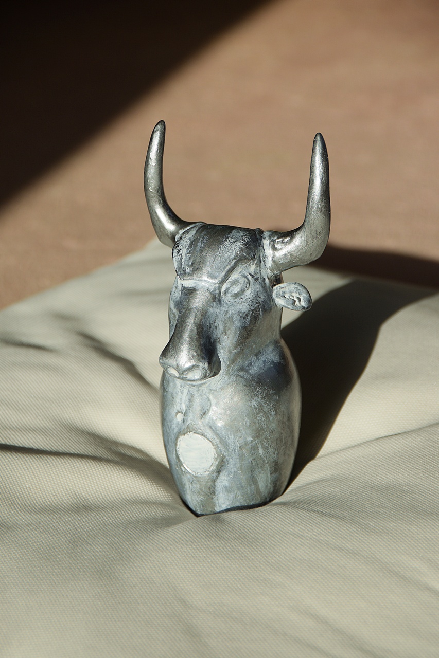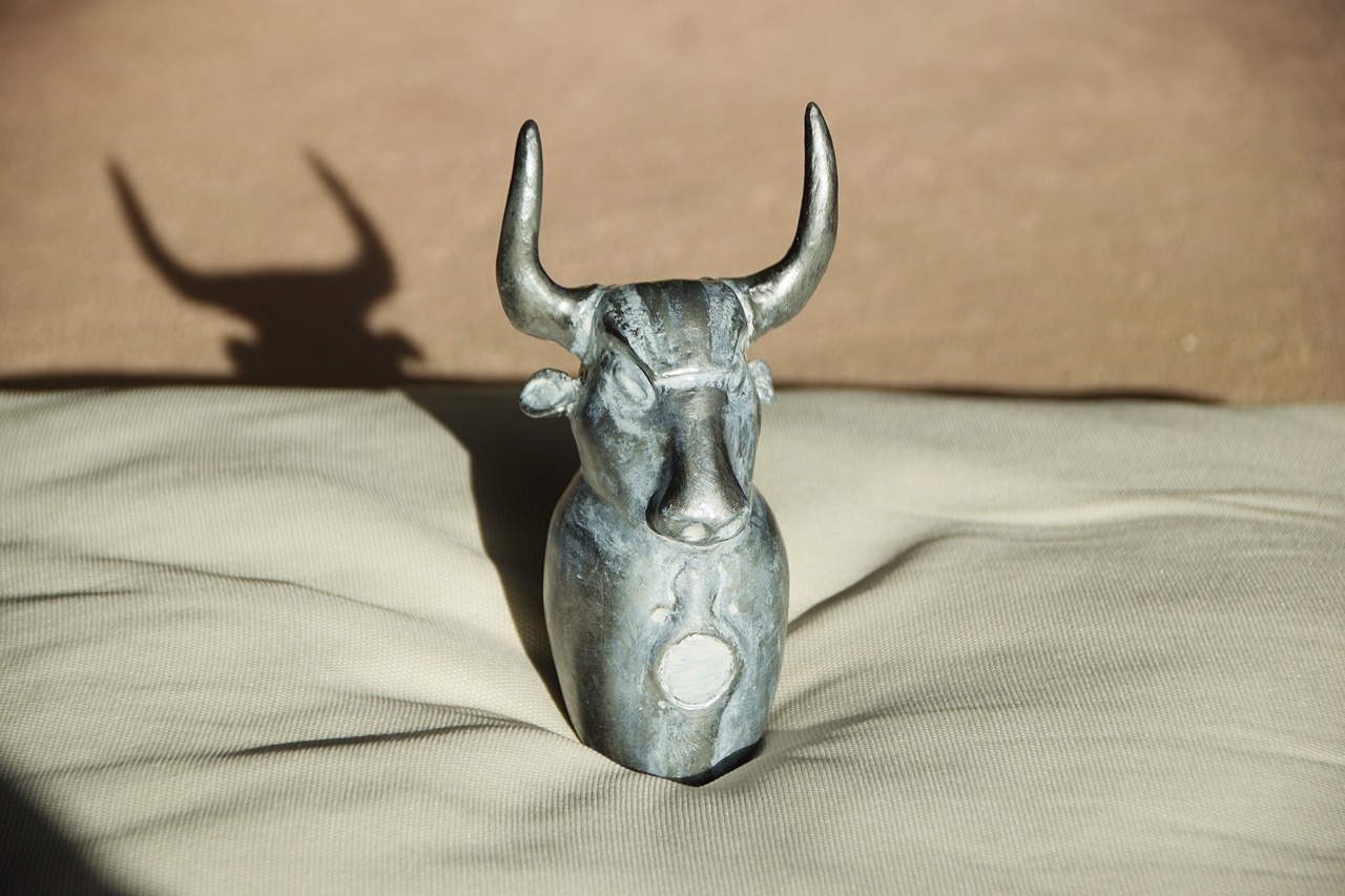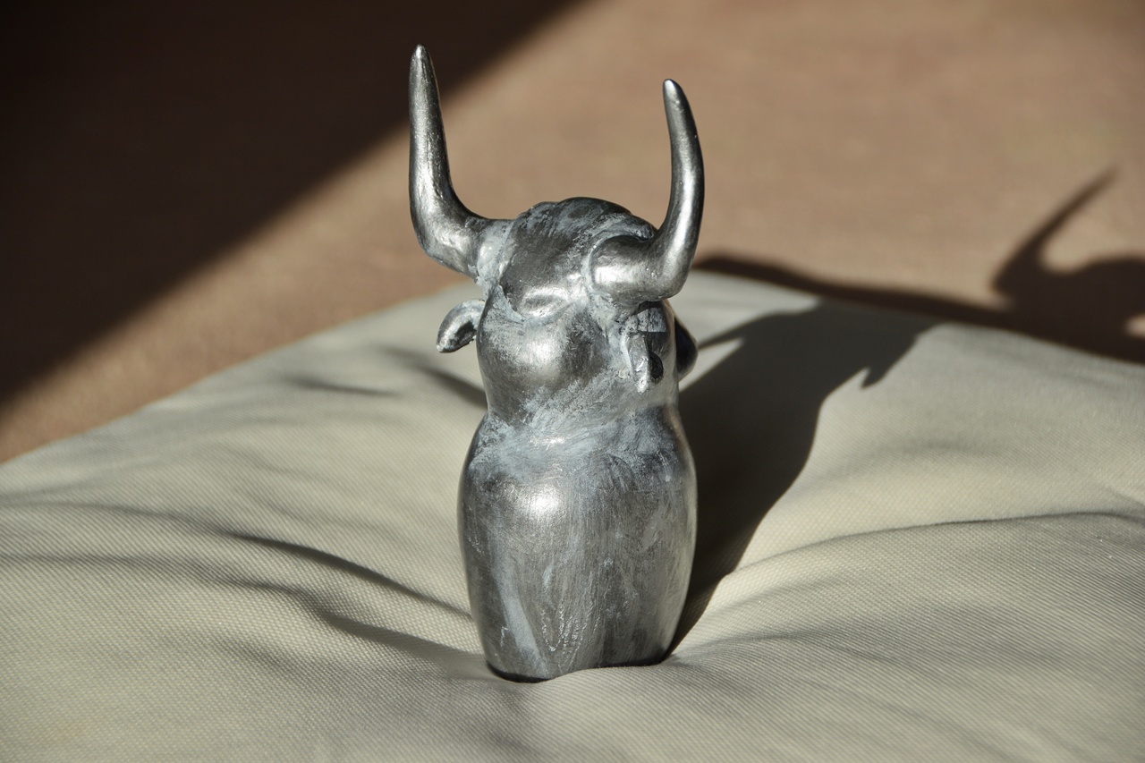 Es handelt sich einmal um eine Stierfigur (Resin, Maße 16 x 8 x 7,5 cm). So ein Teil wurde als Gewicht benutzt, um ein Rätsel zu lösen bzw. eine Tür zu öffnen.
