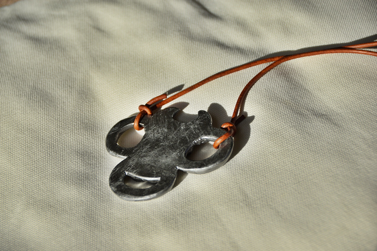 Das andere Stück ist ein Stieranhänger (Resin, Maße 9 x 8 x 0,9 cm) inkl. echtem Lederband. Kultisten hängt im Spiel etwas Derartiges um den Hals.