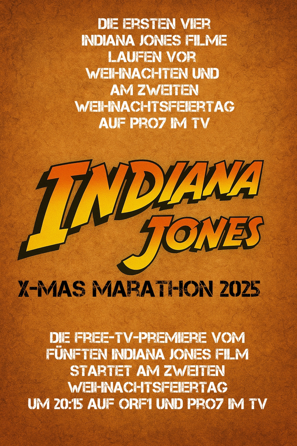 "Indiana Jones und der Jäger des verlorenen Schatzes" (1981) und "Indiana Jones und der Tempel des Todes" (1984) ab 12. Dezember auf Joyn. "Indiana Jones und der letzte Kreuzzug" (1989) und "Indiana Jones und das Königreich des Kristallschädels" (2008) ab 17. Dezember auf Joyn. "Indiana Jones und das Rad des Schicksals" (2023) ab 26. Dezember auf Joyn und um 20:15 Uhr in der Free-TV-Premiere auf ProSieben.