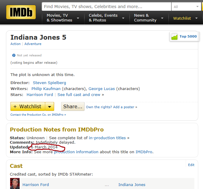 Umfrage: Glaubst du es wird Indiana Jones 5 geben? |