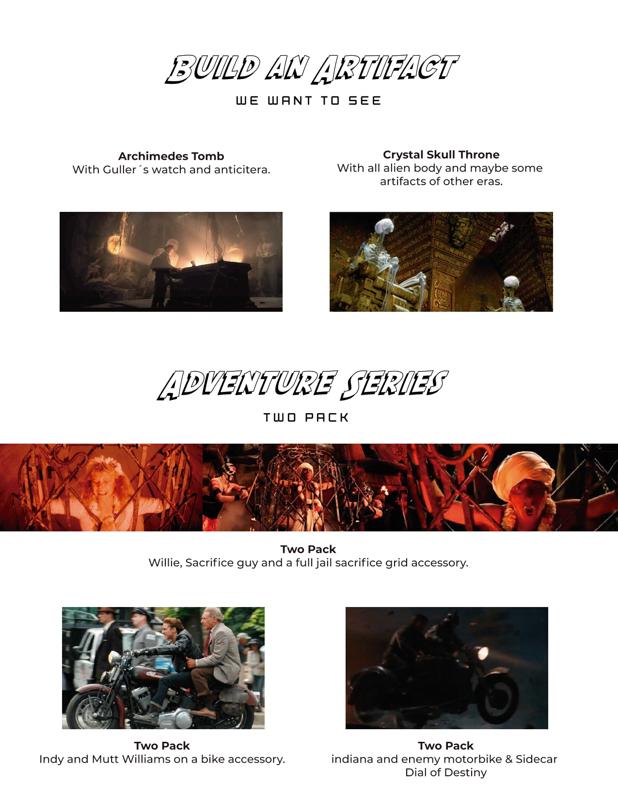 Satipo, Barranca und Jock hingegen funktionieren nicht so gut. Die würden zu viele neue Teile brauchen und ich glaube nicht, dass die Nachfrage nach denen so groß wäre. Vielleicht mit "Temple Escape Indy", aber den hat man ja schon einfach so auf den Markt gebracht. Vertane Chance.