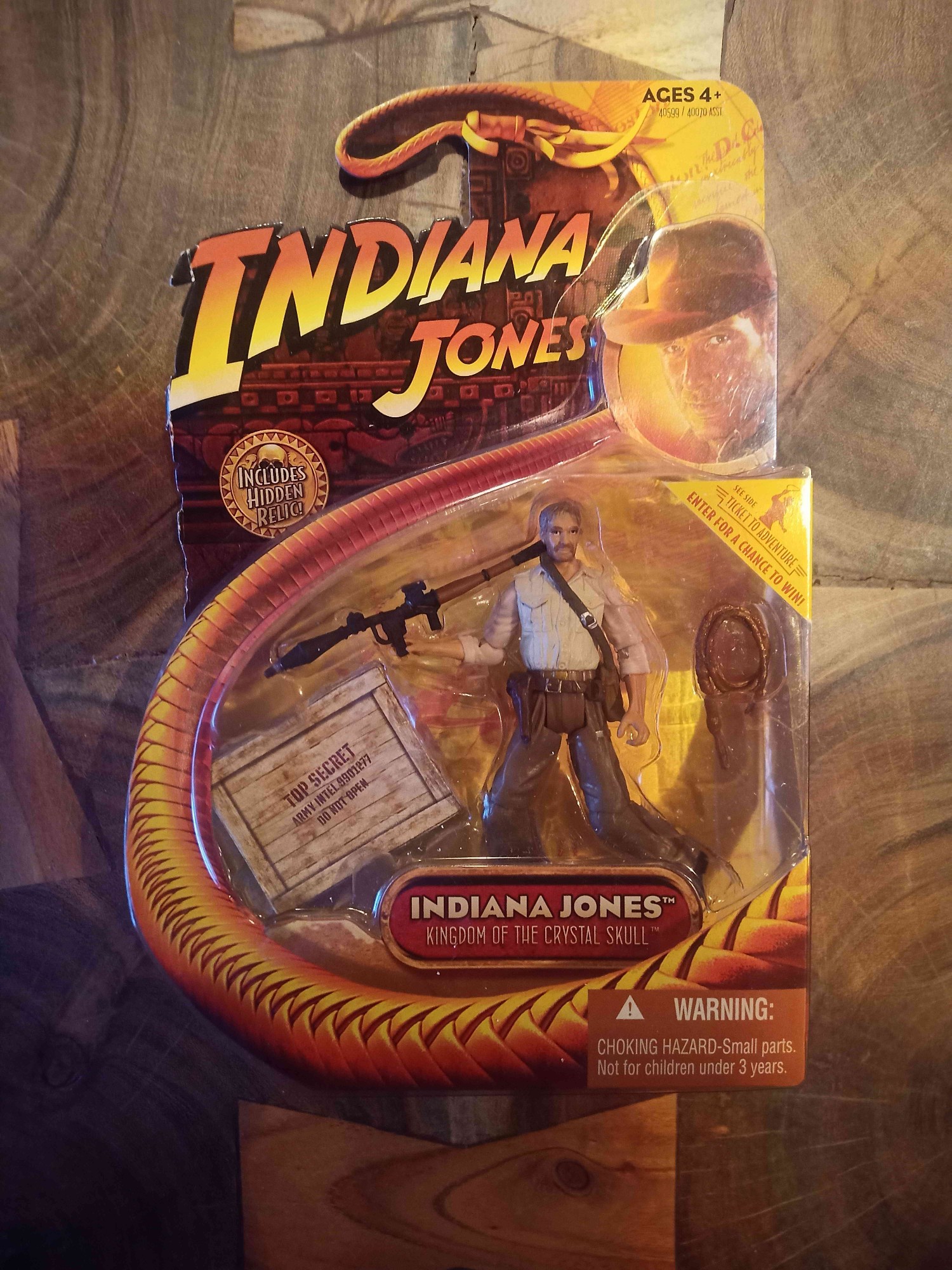 Der Hasbro Indy hat ein Hemd an! Und den Raketenwerfer nutzt Indy im vierten Teil um ihn auf den Urwaldschneißenfräßer der Russen zu feuern, im Beisein von Mutt und Marion im Führerhaus vom russischen Truck, den sie kapern. Die Hasbro Action Figuren Sets sollen ein verstecktes Relikt beinhalten (steht sogar links oben auf der Vorderseite drauf). Ist das vielleicht in der beigefügten Kiste zu finden? Ich muss gestehen ich will die Sets nicht auspacken. Kann uns jemand, der die Sets ausgepackt hat, aufklären?