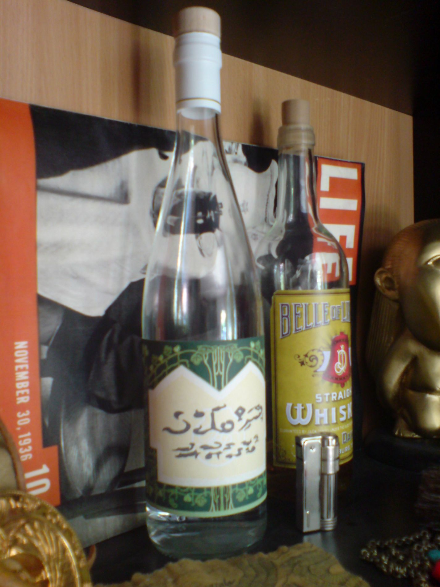 Frage an alle,die sich auskennen:Wo bekommt man das Etikett vom Fusel,den Indy in RotlA trinkt her?