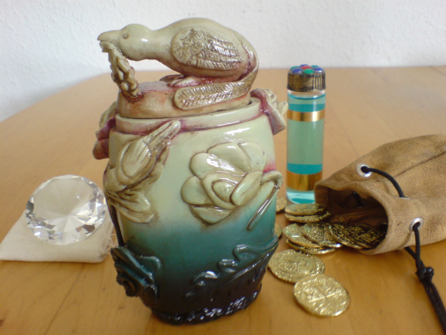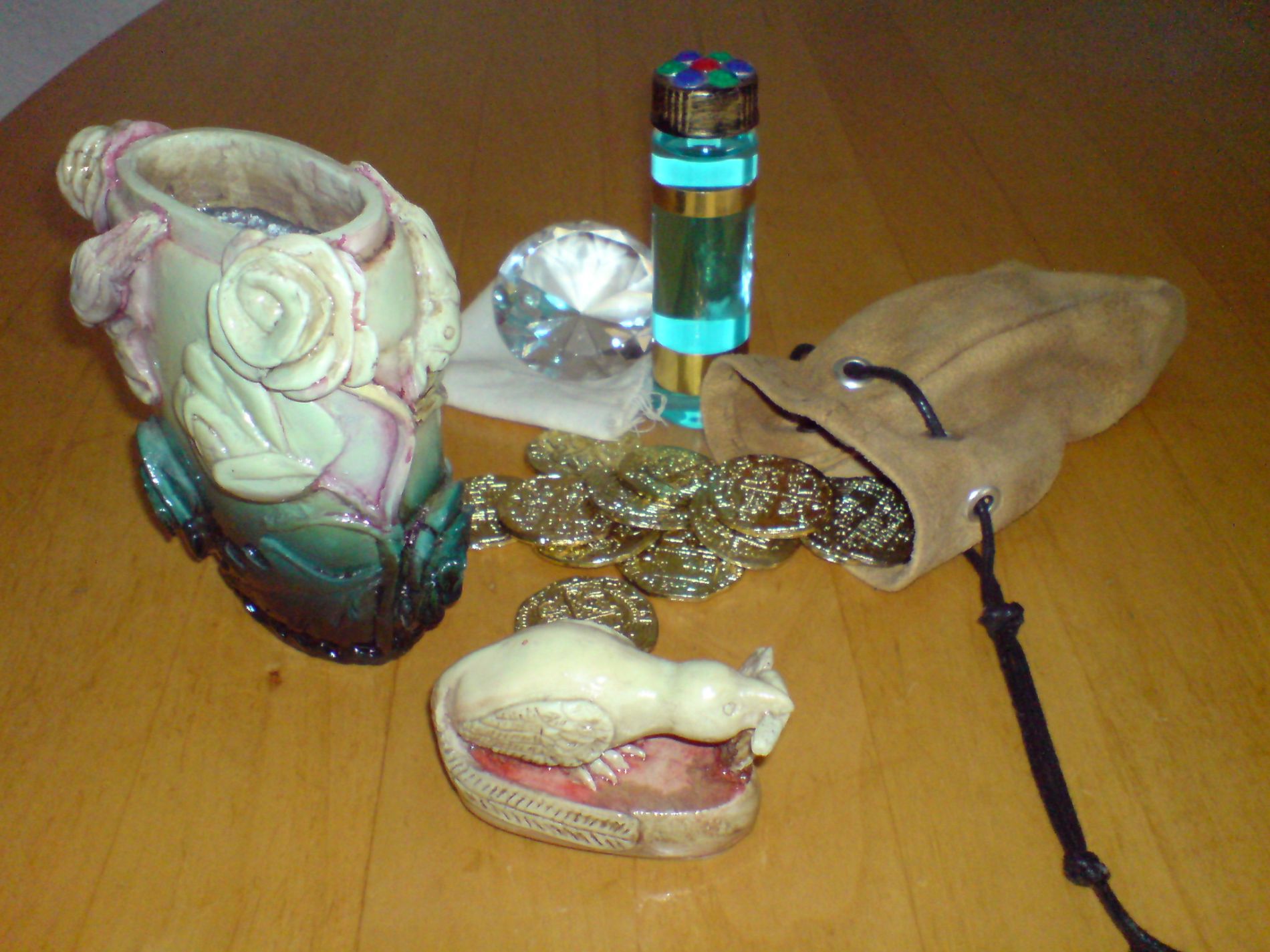 Eine tolle Sammlung! Respekt Die idee mit der Schatzkarte auf Fensterleder ist wirklich gut. Da muß ich wohl nochmal ran und mein Papierteil aussondern. :-) Wo hast du denn die Goldmünzen her?