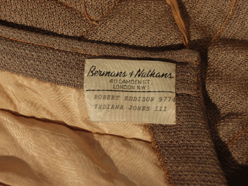 Es war zwar eines dieser Zertifikate dabei, wie man sie z.B. zu den Wested-Jacken dazubekommt, und ich hab´s auch noch irgendwo rumfliegen, aber die Dinger sagen ja nüscht aus. Die kann ich mir in zehn Minuten selbst zusammenschustern. Das Etikett von Berman´s & Nathan´s überzeugt da schon mehr. Auch die Abnutzungserscheinungen (z.B. das Loch an der Schulter) wirken äusserst echt. Und wie viele Stunden ich das Stück mit den Szenen im Film verglichen habe, brauche ich wohl nicht zu erwähnen ...