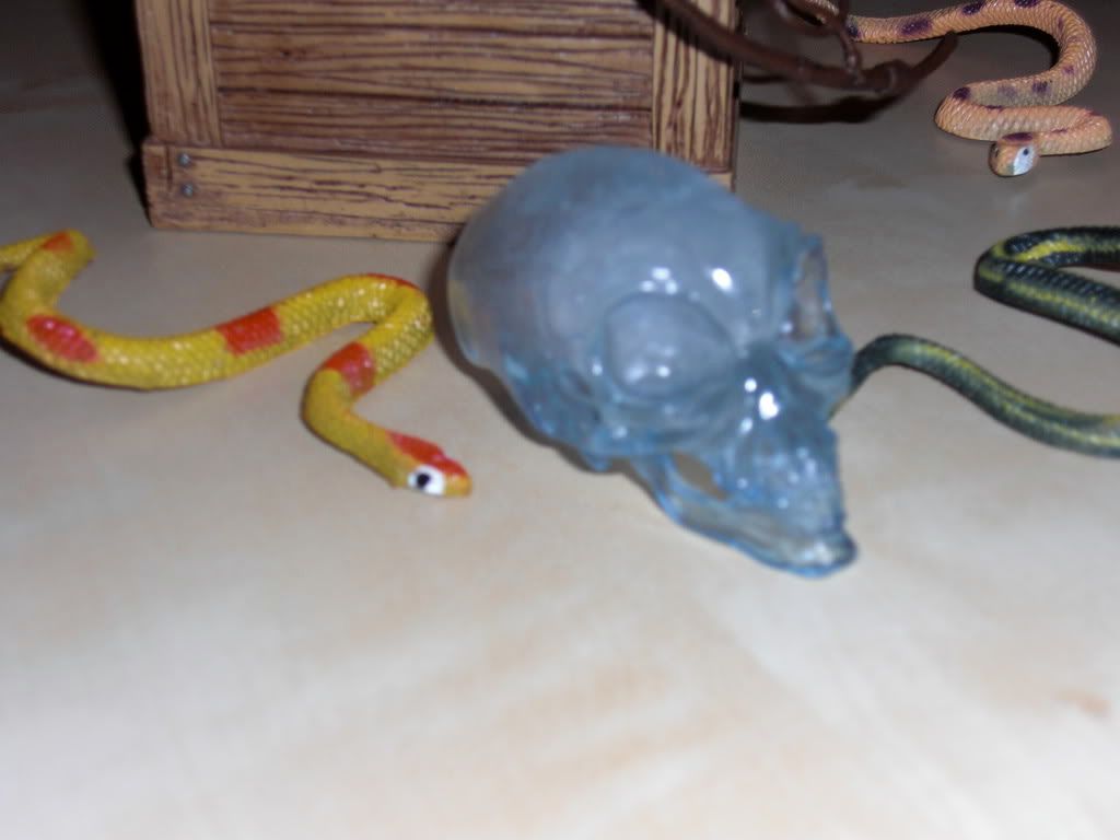 Zudem sind bei jeder Kiste ein Fedoramagnet, ein Peitschenmagnet und mehrere kleine Schlangen enthalten.