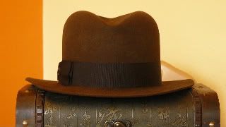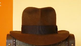 Wenn man genau hinsieht, ist er natürlich nicht 100%. Die Front wirkt auf den zweiten Blick asymetrisch, hinten ist er etwas zu voluminös. Es ist halt einer der unzähligen Close enoughs, aber mehr bekommt man bei Akubra auch nicht. Gern würde ich ausprobieren, wie ein hochwertiger Biberfilz auf den Block reagiert. Leider kenne ich durch Thilo nur Kopka, der aber keine braunen Rohkörper anbietet. Und Marc brauche ich wohl nicht zu fragen. So bleibt mir nur das Karnickel, das aber zumindest einen netten Sommerhut abgibt.