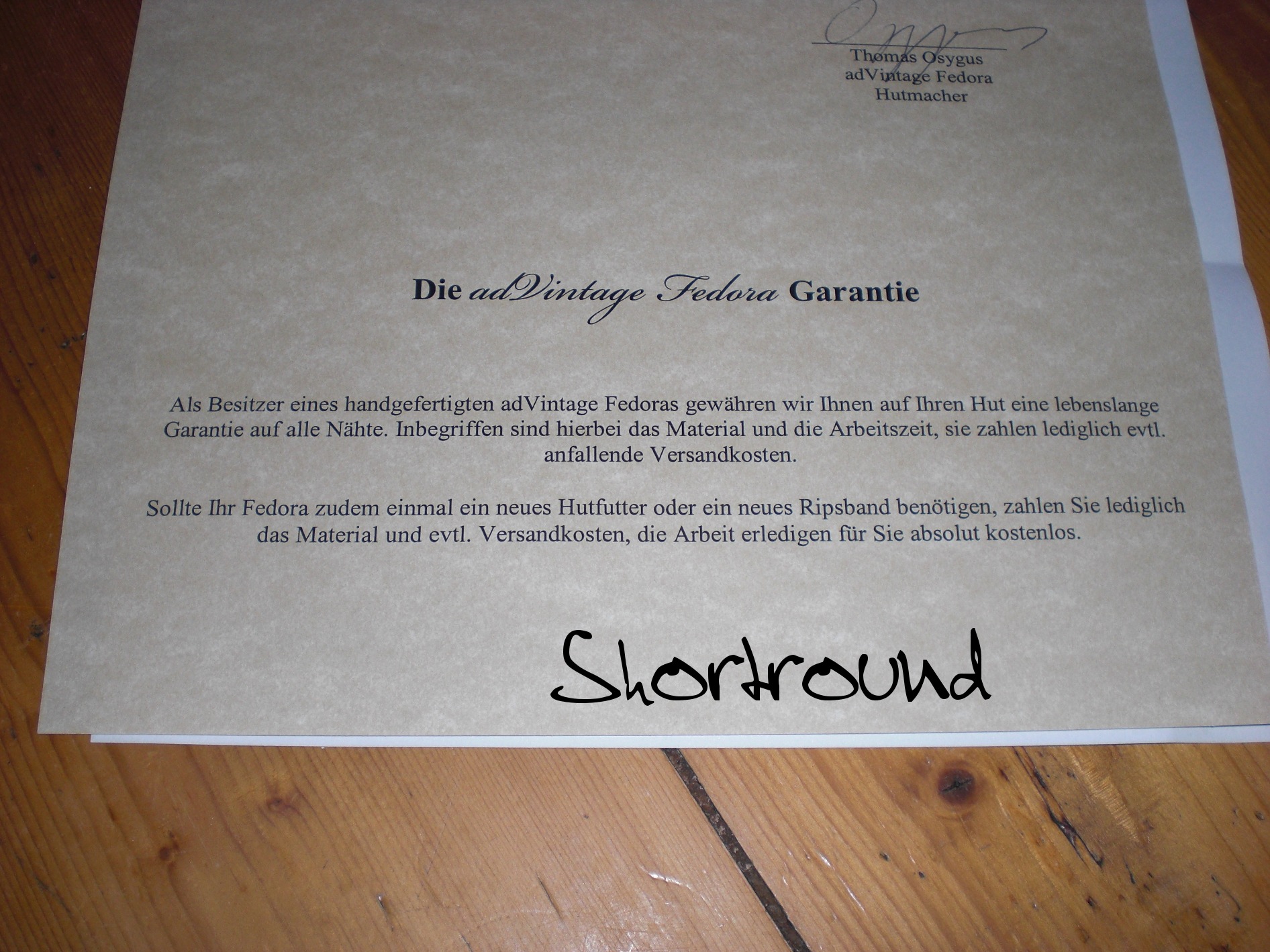 Fazit: Bestellt am besten noch heute, der adVintage Fedora lohnt sich definitiv. Der Look ist sehr nahe am Original, überzeugt euch durch die Bilder. Aber glaubt mir - die Realität haut euch von den Socken, spätestens, wenn ihr den Hut anfasst und das erste Mal aufsetzt. Ich überlege definitiv, wieviel Köpfe ich mir noch wachsen ließe. Wenn genug Geld da ist, werde ich auf einen grauen Hut bestehen, Thomas. Einen Stammkunden hast du dazugewonnen. Hier muss ich ebenfalls nochmal darauf hinweisen, dass wir uns nie persönlich begegnet sind. Ich bin auf die Seite aufmerksam geworden und es hatte sich schnell ein reger Schriftwechsel ergeben.