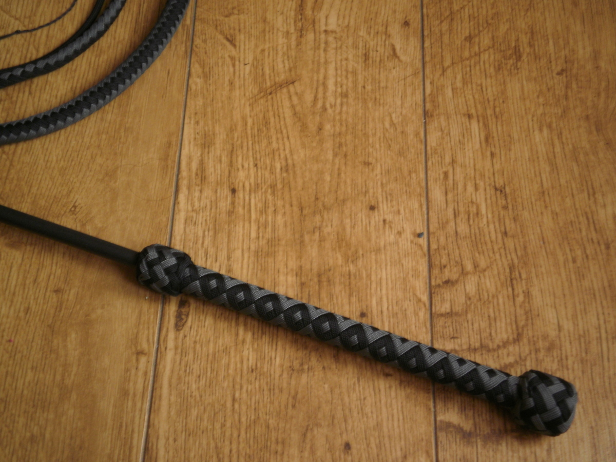 doch es ist eine normale Peitsche.. zumindest der GRiff einer solchen Zwinkernder Smiley Sieht mir schwer nach den Stock-whip aus. Am Ende ist ne lederschlaufe durch die dann die Peitsche an sich gefädelt wird Zwinkernder Smiley