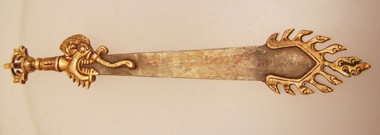 z. B. ein Khada-Manjushree Schwert (siehe Foto unten), welchem nachgesagt wird, dass es Unwissenheit zerstört. Damit könnte man eine Geschichte aufbauen, in der "die Bösen" diese "Waffe" für sich haben wollen, damit die von Ihnen anvisierte Opferzielgruppe kein Wissen erlangt.