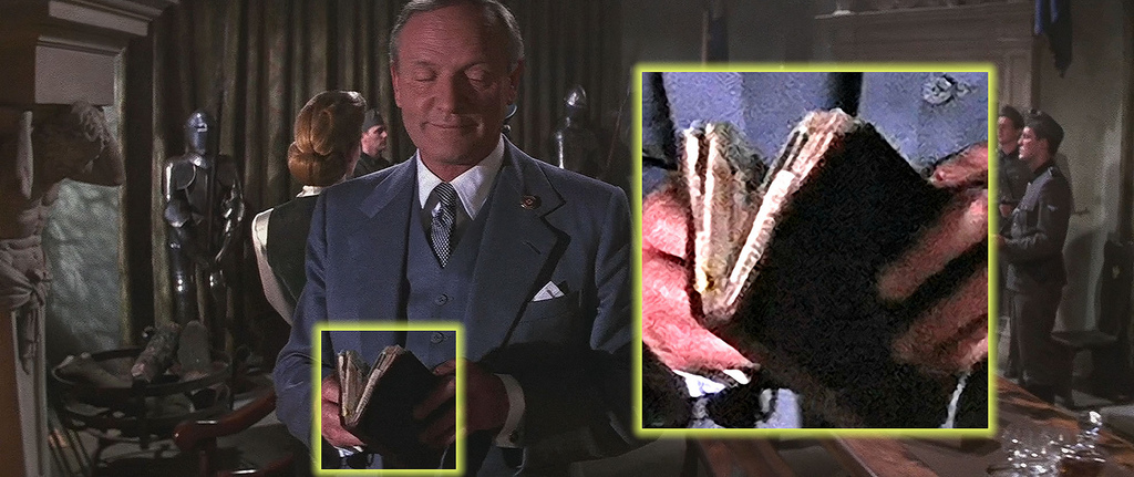 Ich stell mir grad vor, daß am Set einfach ein Propmensch schnell noch Füllmaterial für das Diary besorgt hat, damit es in der Donovan-Szene etwas voller aussieht. "Ey Jungs, hat hier noch einer Papier oder Pappe? Gib mir das mal her - ja, genau, die Camelpackung!" Und wir packen das jetzt als Inlay mit rein...