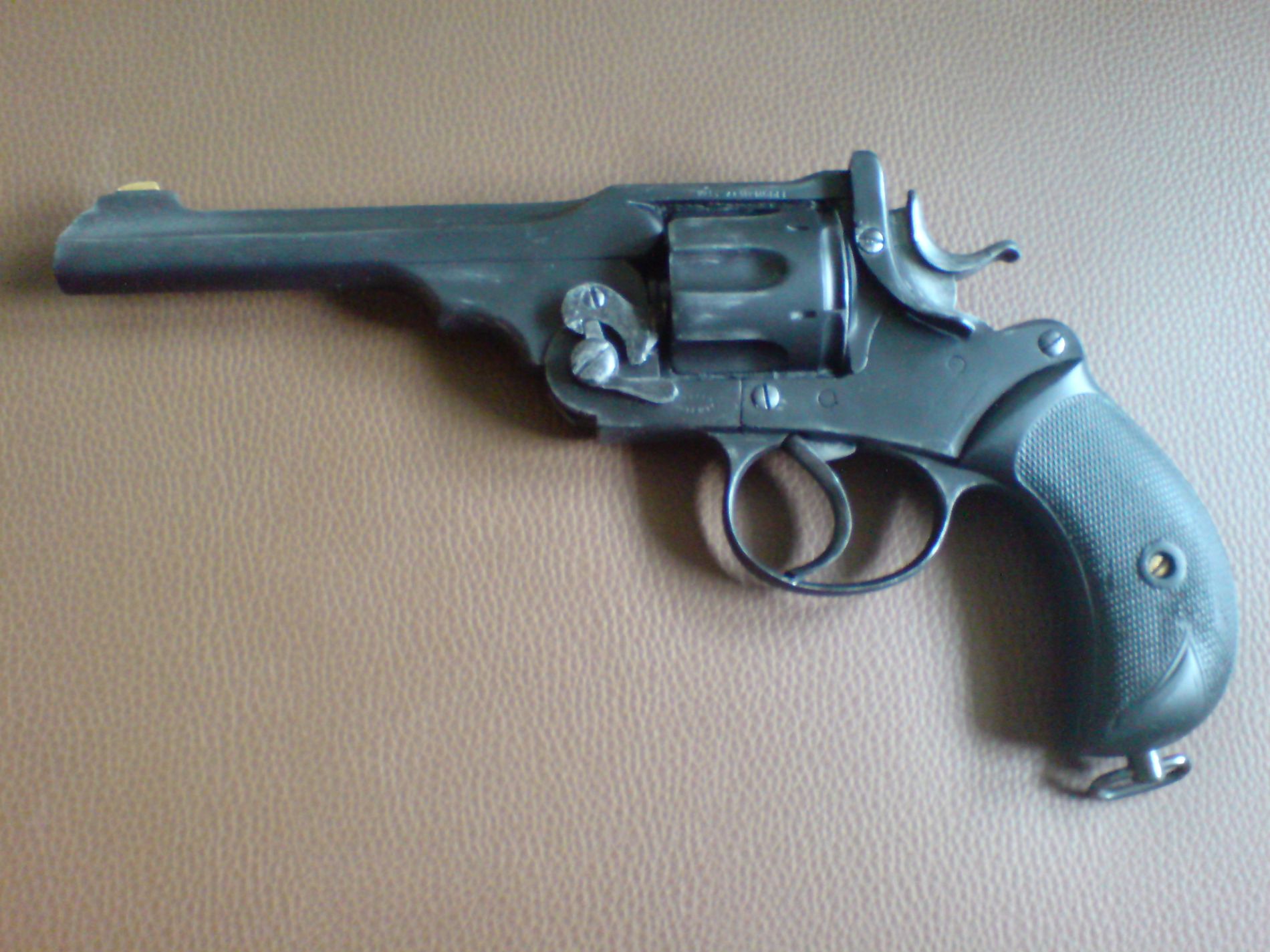 ich habe eine von den webley's. (danke nochmal p.j.) ich bin noch immer über die größe erstaunt. ist ein ganzes stück größer als die MK IV. nichts für leute mit kleinen händen. werde mir einen neuen schaukasten bauen müßen.