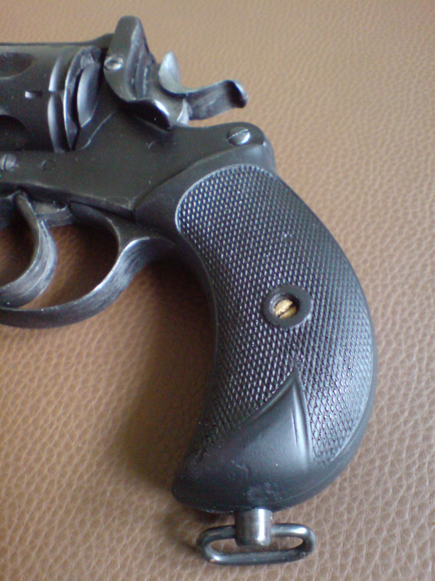 habe aus den staaten 4 resinabgüsse des webleys (mit glück und etwas schmiergeld ;)) bekommen. auf den nachfolgenden bildern ein kleiner werdegang vom rohling bis zum fertigen revolver. das resinkit besteht aus 3 teilen, durch die seperaten griffschalen erleichtert sich die lackierung. die auf dem bild des fertigen revolvers zu sehende fangriehmenöhse ist ein gewehrriehmenbügel einer schrotflinte. wie bei resinmodellen üblich benötigt es vor dem lackieren natürlich noch etwas vorarbeit, sprich schleifen und spachteln. ein fertiges modell und ein rohling sind noch bei mir zu haben.