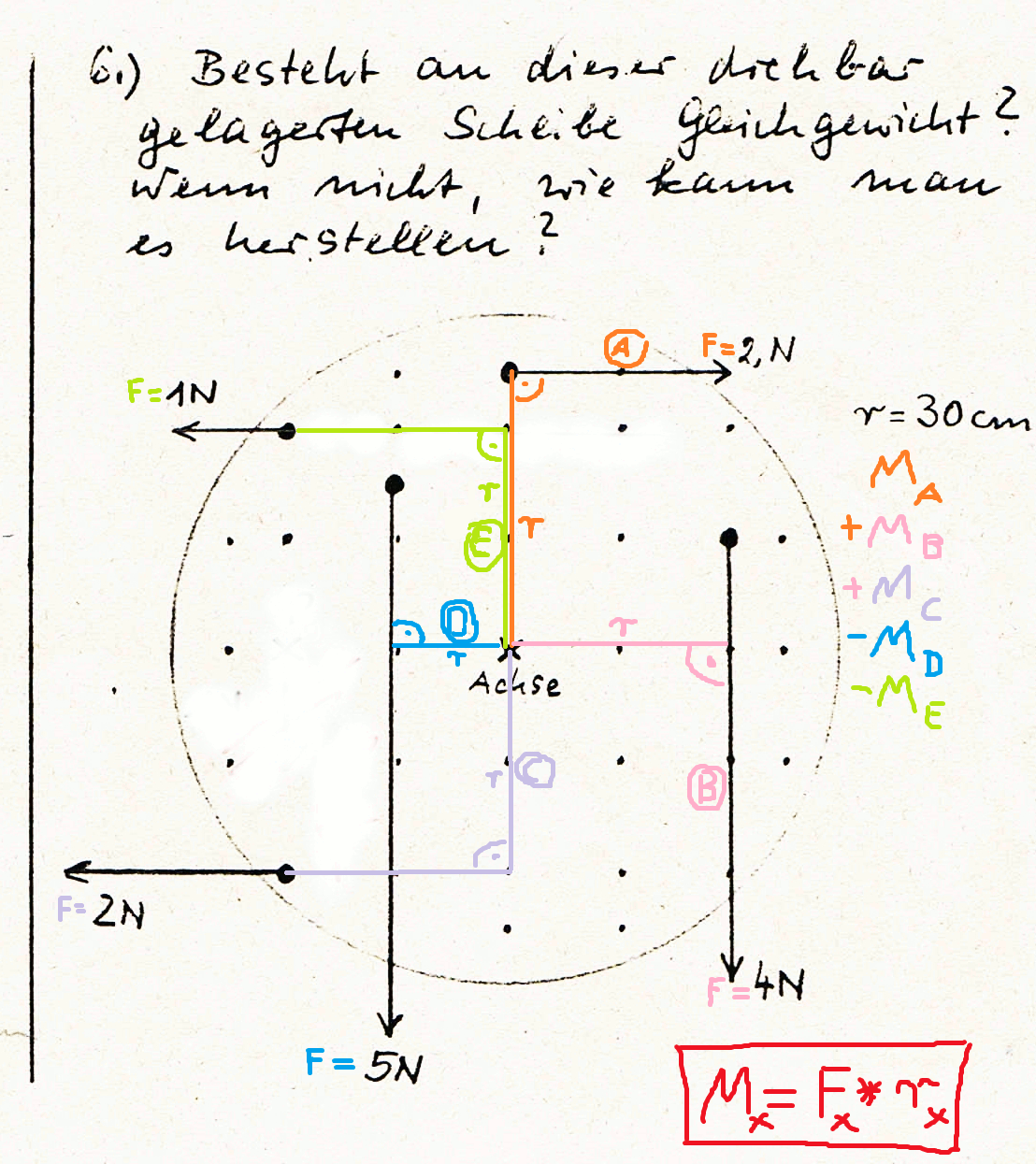 was nach meinem Verständnis daran liegt, dass der Hebel bei P1 zwar größer ist als bei P4, aber die effektive Kraft (also der Anteil senkrecht zum Hebel) im gleichen Verhältnis kleiner wird.