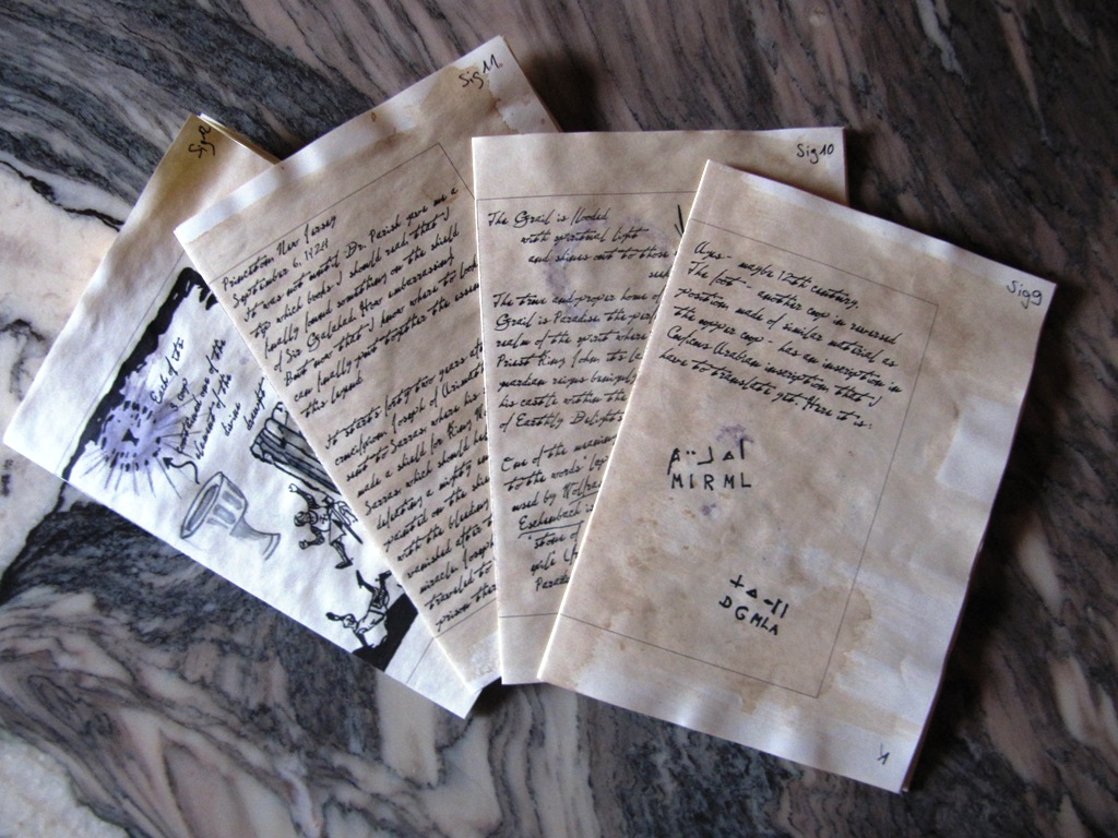 Die Zeichnungen werde ich später mit Tusche und Feder auf Karton anfertigen, einscannen und dann einfügen. Zuerst dachte ich, dass ich in den Ausdrucken zeichnen solle - SC pur, sozusagen. Dann müsste ich aber auch den Text von Hand schreiben, und das klappt nicht, meine Schrift ist dafür einfach zu elegant, leider, auch wenn sich das eingebildet anhört. Aber ich kriege diesen spitzen Strich nicht hin, bei mir ist immer alles rund, gleichmäßig und ausholend. Also werde ich eine digitale Vorlage erstellen und die Bilder einfügen. Und das kann dauern ...