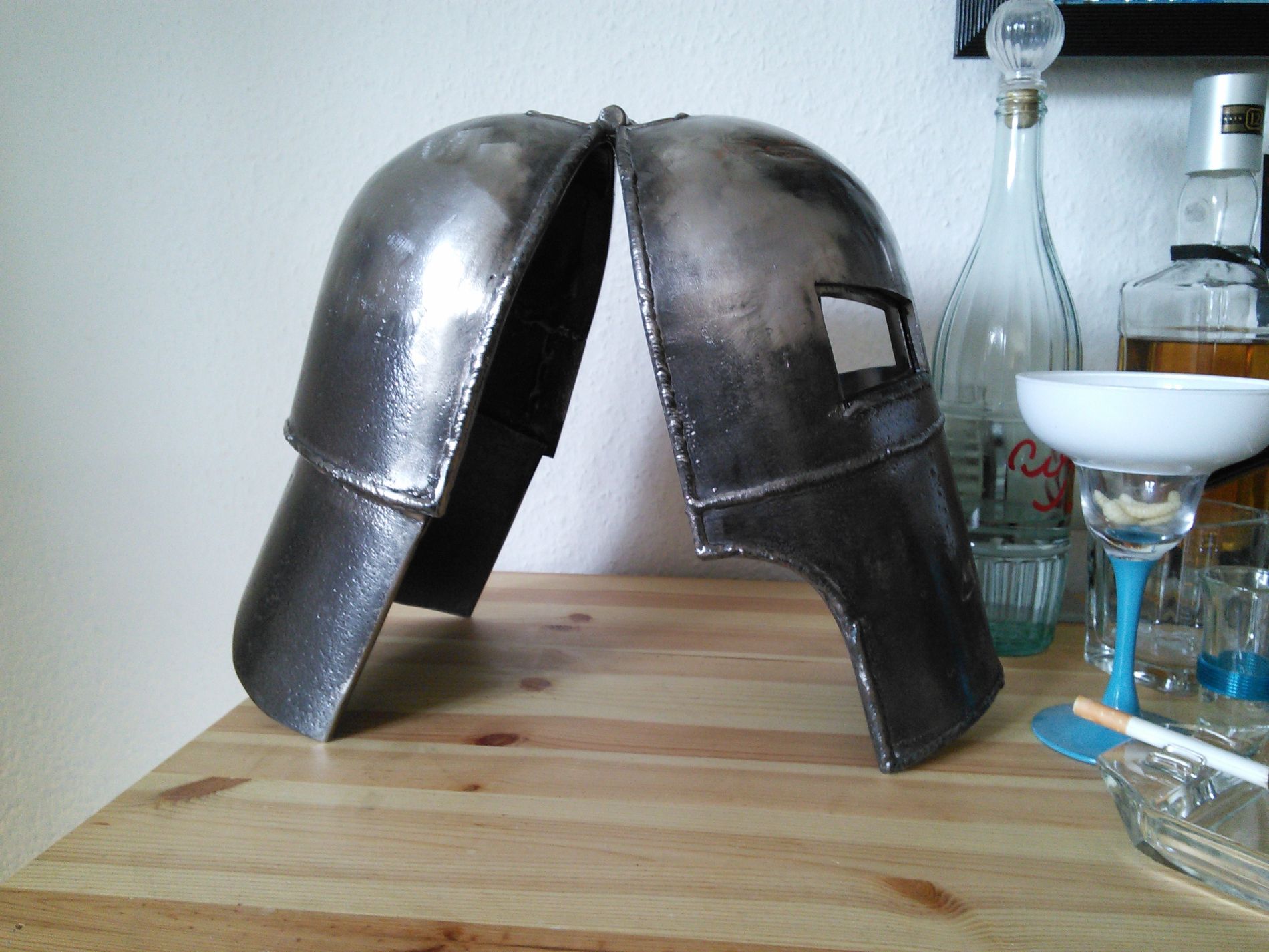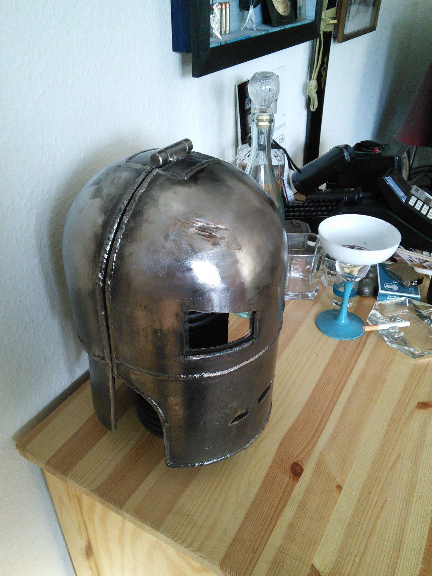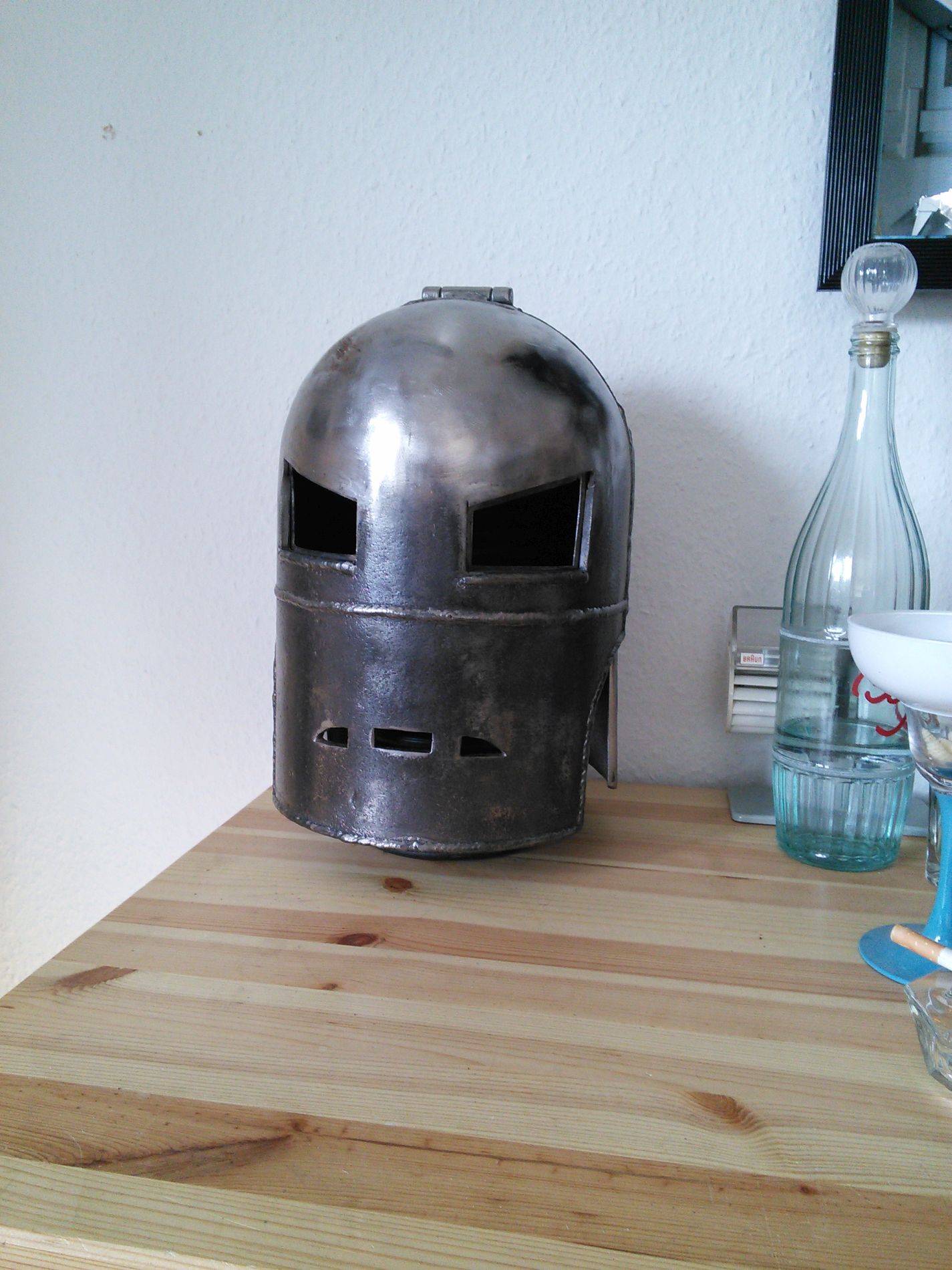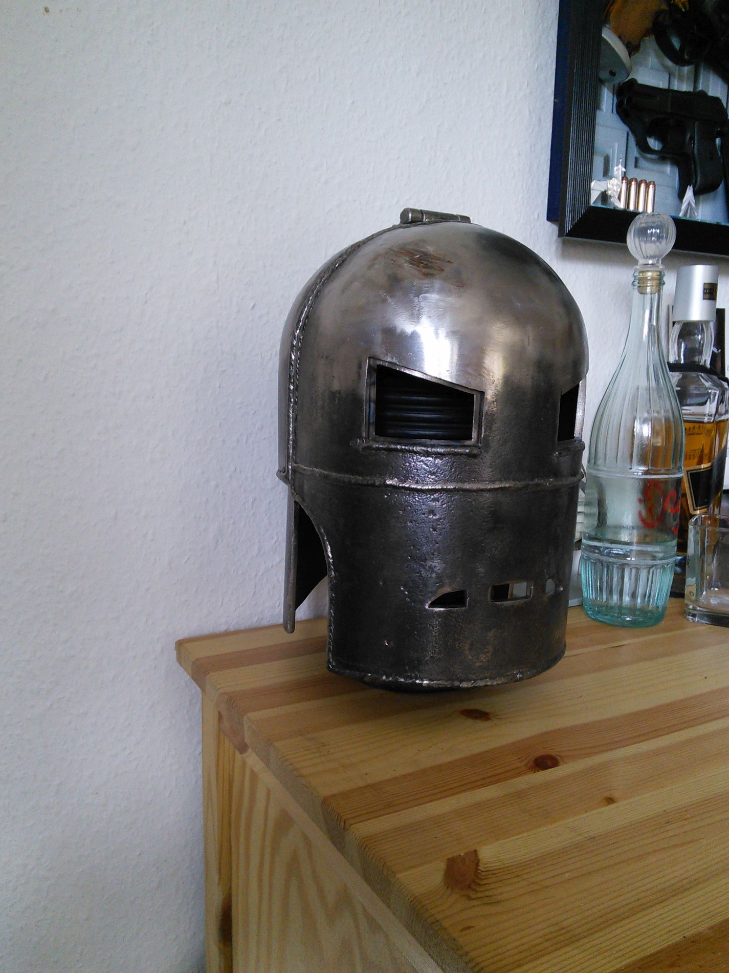 zum iron man helm mkI, gefertiget aus stahl, 7 kg, wandstärke 3,5 mm!