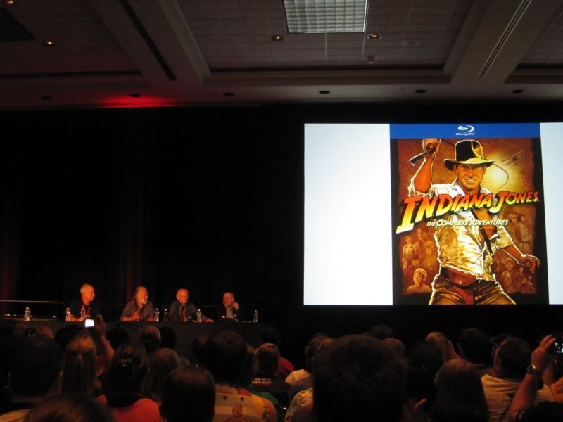 Zitat von Fett Jones:Moin zusammen, ich war die letzten 4 Tage auf der C VI in Orlando und dort gab es ein Panel mit Ben Burtt, Robert Watts u Lorne Petersen zu den Indy-Blurays...sehr cool... ein paar Bilder u bei ein Teaser-Video mit deleted scenes kann ich nach meiner Rueckkehr online stellen...wenn gewuenscht...:) auf jeden Fall gibt es lt Ben Burtt keine digitalen Veraenderungen sprich es wurde etwas herausgeschnitten o.ae., lediglich die Quali von Bild u Ton wurde hochgefoent...der Produktionshelfer laeuft also immer noch durchs Bild... Besteht Interesse an dem Material oder wollt Ihr bis zur Box warten?Hi, hier schon mal 2 Bilder von dem Panel, der Youtube-Upload dauert noch etwas
