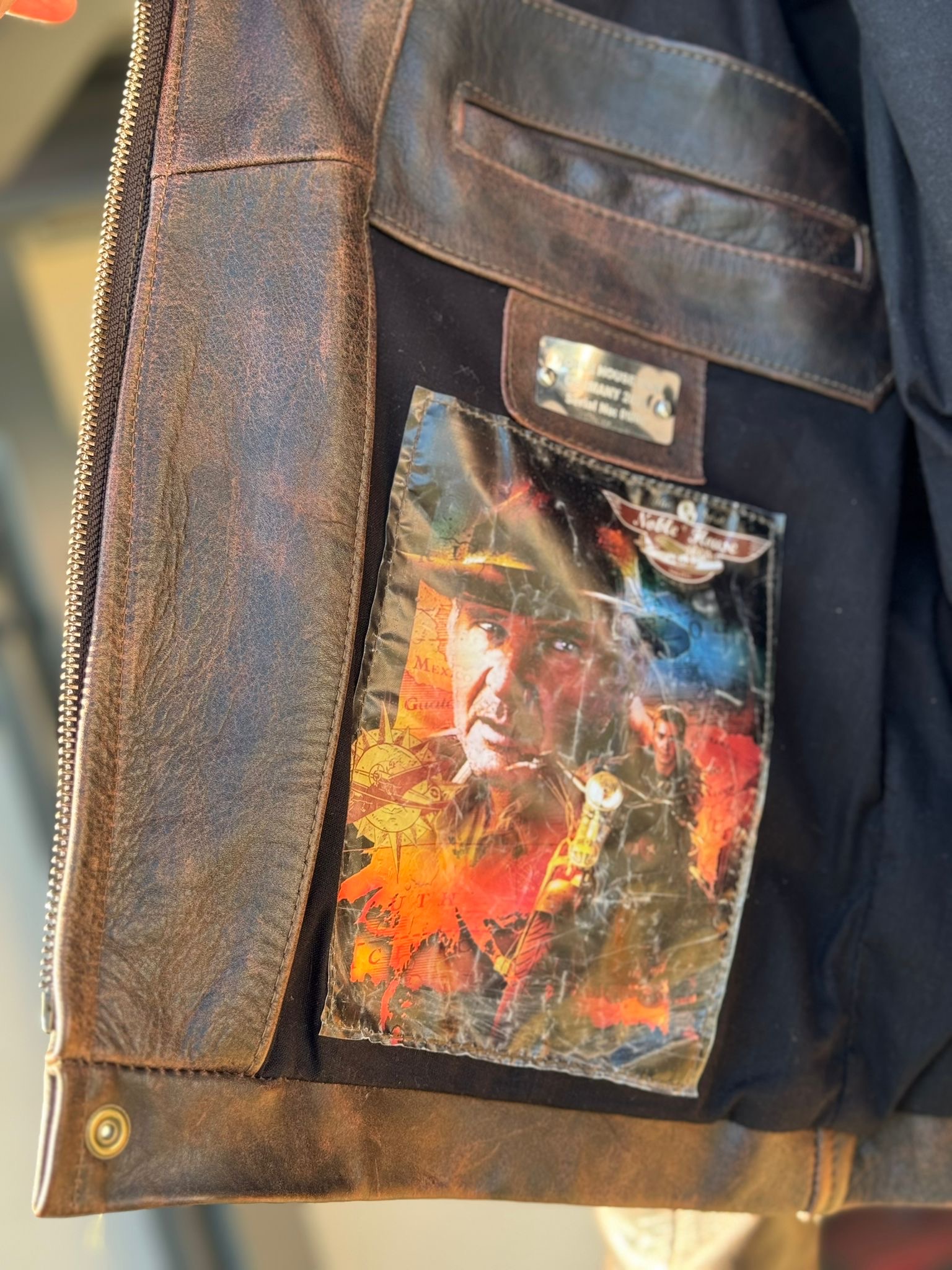 Sie trägt sich sehr angenehm und ist keinesfalls irgendwie steif, auch wenn sie sich relativ schwer anfühlt. Für mich persönlich ein Qualitätsmerkmal! Zwar bin ich kein Leder-/Schneiderexperte, aber die Verarbeitung macht auf mich wirklich einen extrem guten Eindruck - für das Geld bekommt man eine robuste und sehr hochwertig anmutende Jacke, bei der an Lederqualität und -Quantität offensichtlich nicht gespart wurde. Konkret handelt es sich um ungespaltenes argentinisches Rindsleder. Das innenseitig eingenähte Indy-Bild ist zwar etwas kitschig/unnötig, aber beim Tragen oder Aufhängen ja nie wirklich sichtbar.