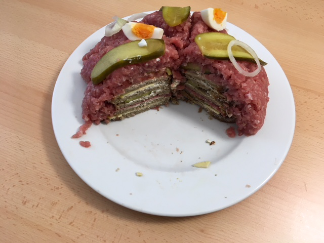Fiakergulasch mit Spiegelei und Würstel. Jetzt gerade Manner-Waffeln"Vienna Coffee". Stecke ich aber ganz gut weg...