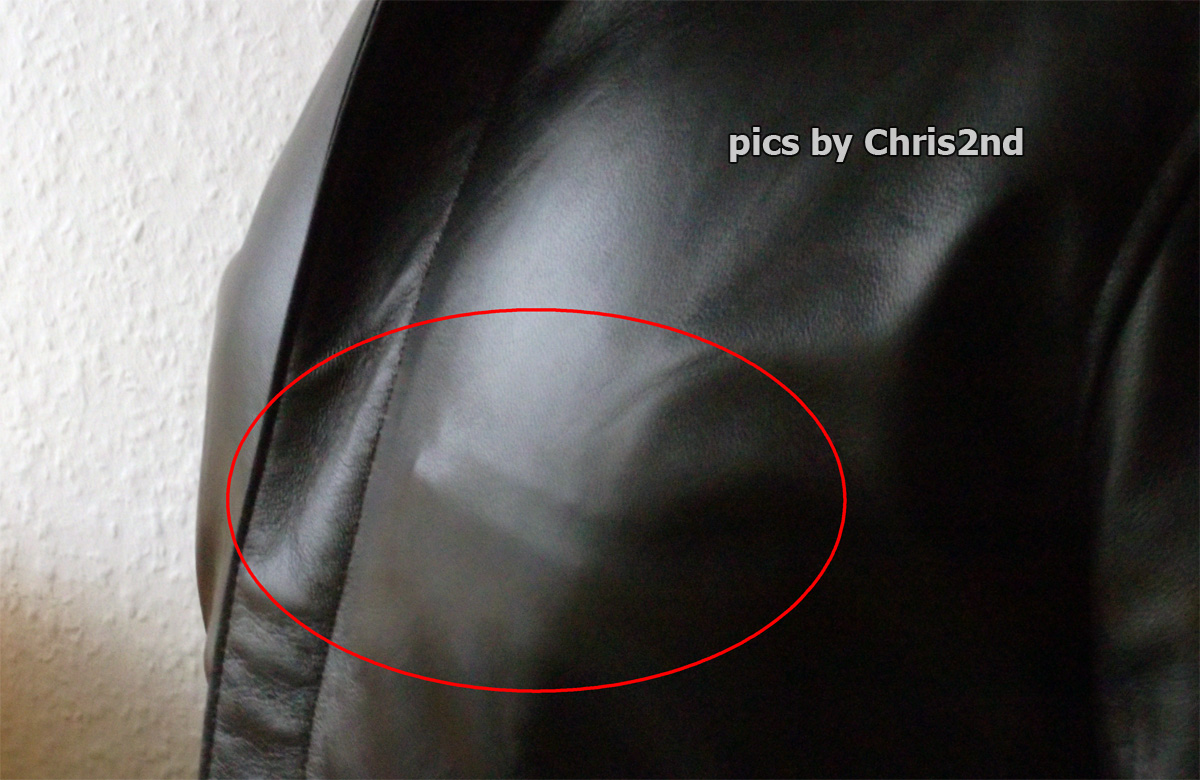 The leather of the jacket from my last order is pretty thin. Much thinner than the leather of my jacket, I ordered in September 2011. When I take a deep breath, I can see from the outside, what I carry in my inside pocket! I honestly don’t know what to say. I have no words for my disappointment. It does not work, that you increase your prices to keep your quality. But then, despite higher prices you go down with the quality. There’s only one of the two. Finally, the leather itself causes, that the jacket doesn’t look like hand-made or high quality. The jacket looks as if it were made by synthetic leather. And I paid £215 for it.