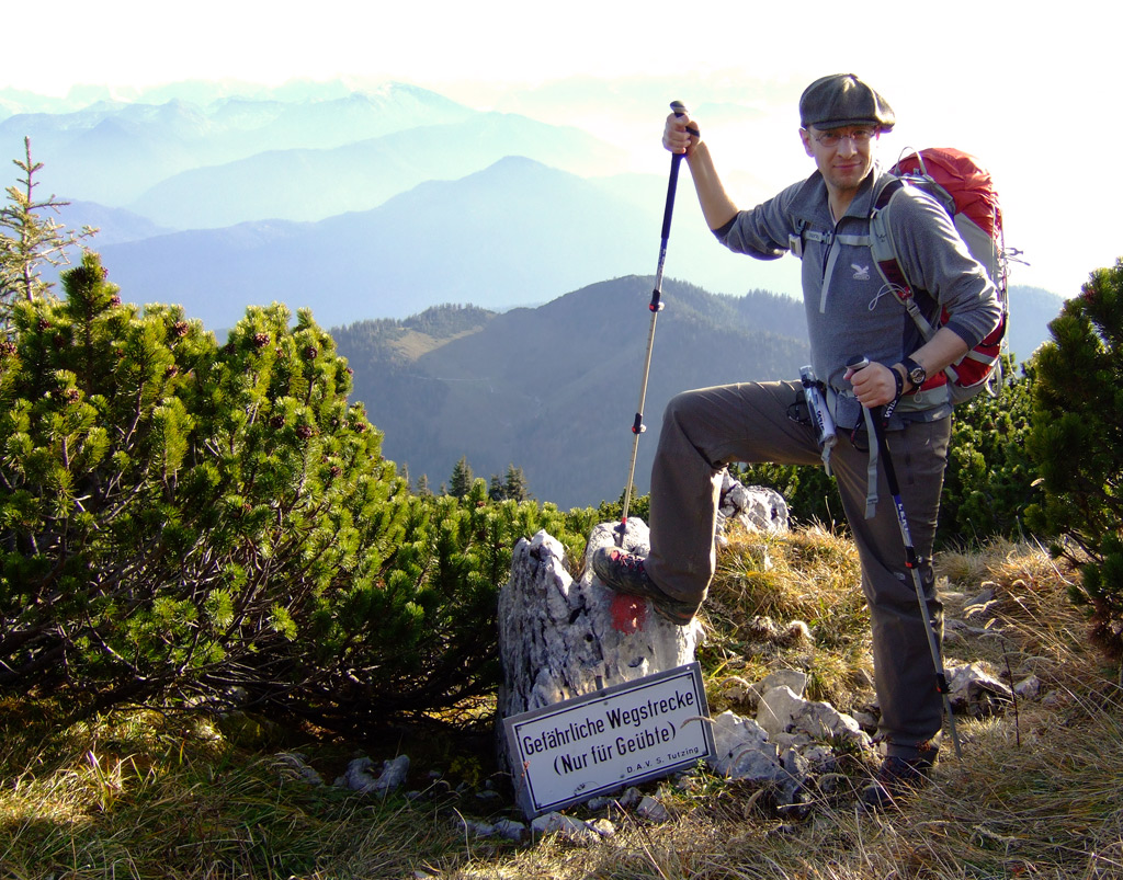 Ich erkannte den großen sportlichen Nutzen des Indoor-Ruderns für die Muskulatur und die Ausdauer und suchte mir erstmalig ein Fintnesstudio um gezielt auf diesem Gerät trainieren zu können. Nuja, lief ganz gut, nur hatte ich in meinen Trainingsplänen übersehen, daß die Bänder sich nicht so schnell an die Belastung anpassen wie mein Kreislauf. So wurde ich dann zu einer längeren Pause gezwungen und habe erst letzten Sommer die Berge für mich entdeckt. Auch hier kann ich im Aufstieg über längere Zeit den Puls hochtreiben, ebenso werden aber auch technische Anforderungen gestellt und vor allem ist man in der freien Natur.