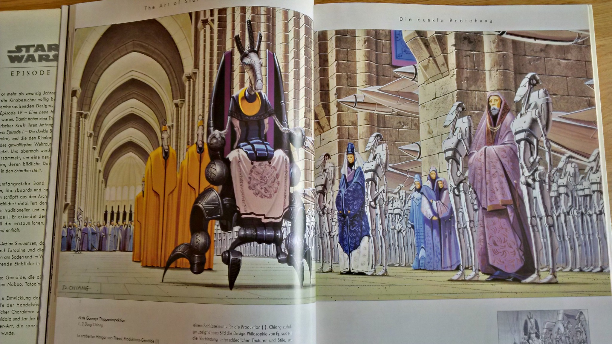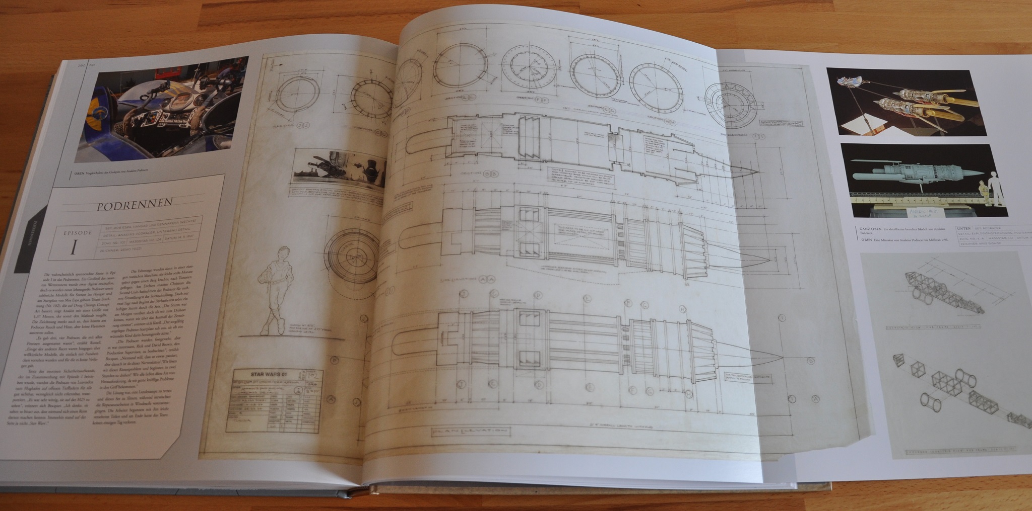 Allerdings muss ich zugeben, dass es ein Werk für echte Beinhart-Geeks ist. Geboten wird eine Flut an Blaupausen für so ziemlich alles, was bei Star Wars eine Blaupause benötigte - Modelle, Kulissen, Kreaturen etc. Das fasziniert natürlich nicht alle Fans. Was das Buch dann aber wirklich interessant macht, sind die begleitenden Texte, die einen Einblick in die Denke der Macher gewähren. Es ist schon interessant zu lesen, wie manche Dinge entworfen wurden und was sich die Leute dabei gedacht hatten. Der Schwerpunkt des Buches liegt übrigens klar auf der OT, dennoch gibt´s auch einen Teil zur PT. Und nette Detailfotos sind auch enthalten.