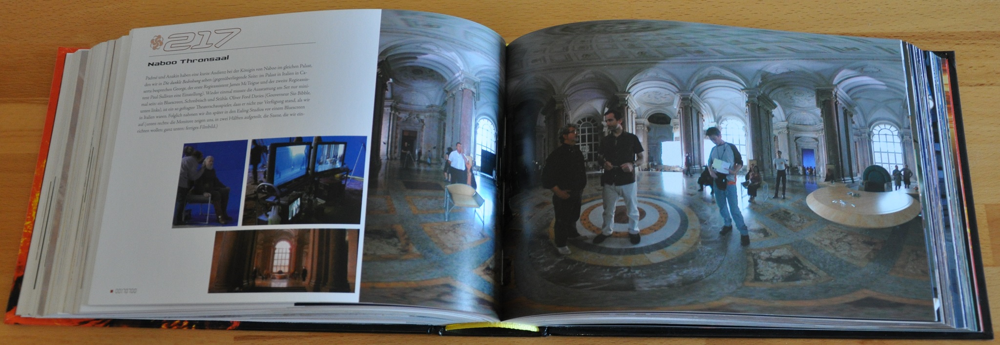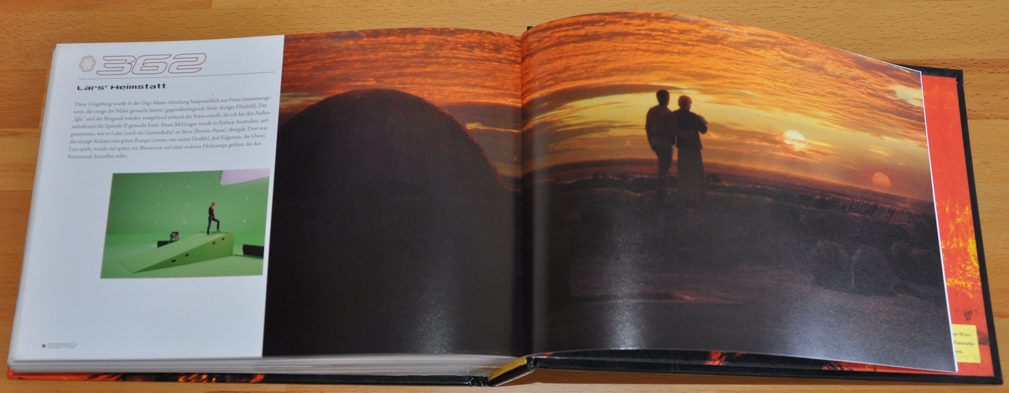 Dann noch ein Buch, das schon seit längerer Zeit erhältlich ist: "Star Wars. George Lucas und die Schöpfung seiner Welten" (Fotos 10 bis 15). Geschrieben von John Knoll, einer der Legenden bei ILM (und ganz nebenbei Erfinder von Photoshop). Ebenfalls größeres Format, allerdings ungewohnt rechteckig, sehr dick und schön aufgemacht sowie mit einer zusätzlichen CD-Rom mit Fotos und Videos.