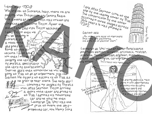 Als Alternative für die noch immer "zu professionellen" Bilder kannste auch versuchen die mit PS Elements oder Gimp so zu überarbeiten, dass die aussehen, als wären es kopieen. Im gebunden Diary klebste die augeschnittenen Schnipsel, dann anstatt der gedruckten Bilder ein. Oder Du lässt wieder "Dad" zeichnen (coole Idee by the way)... aber bei der Beziehung zwischen den beiden, glaub ich nicht das Henry Sr. das all zu oft gemacht hätte